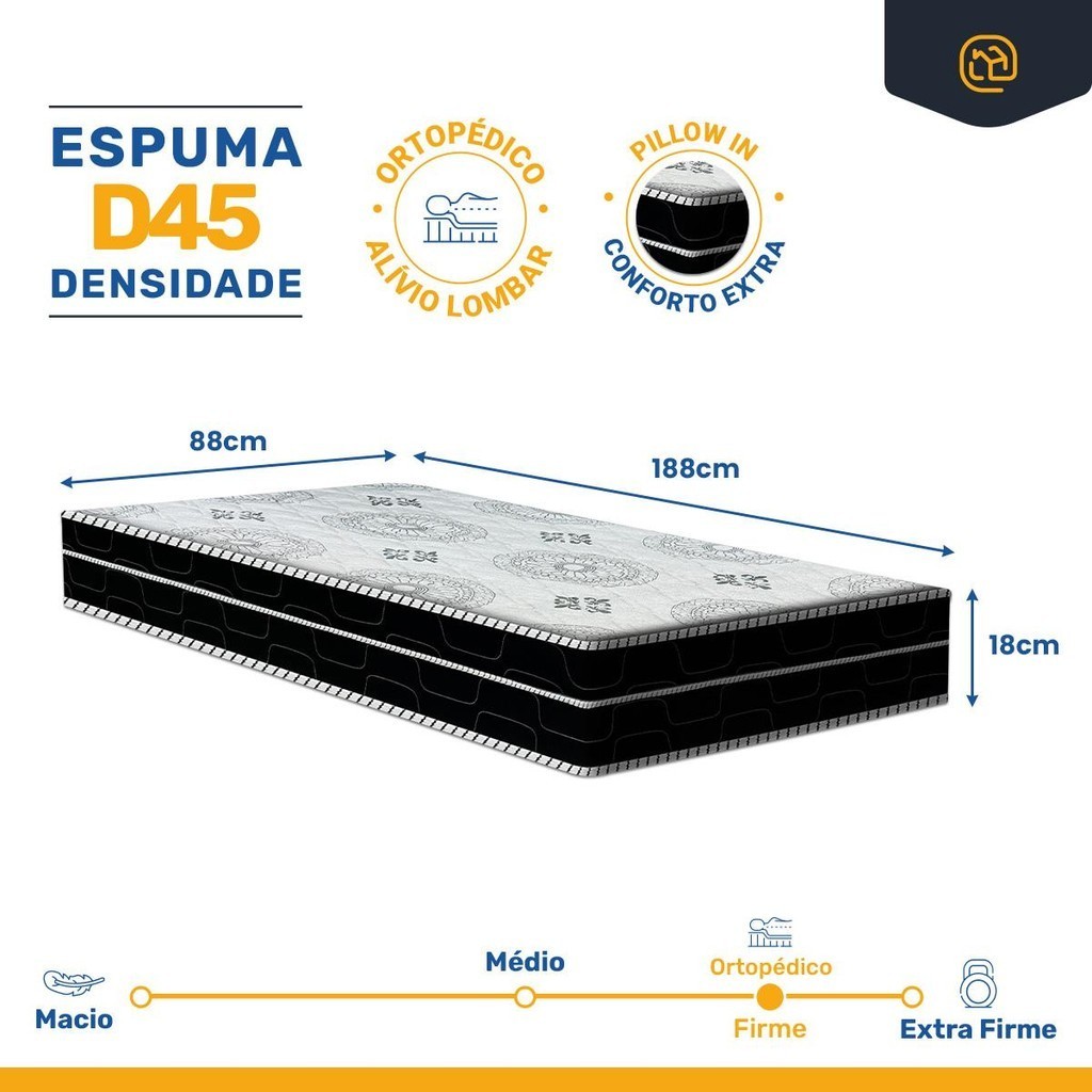 Cama Box com Colchão de Espuma D45 Pillow In Anjos OrtoConfort Solteiro 88cm