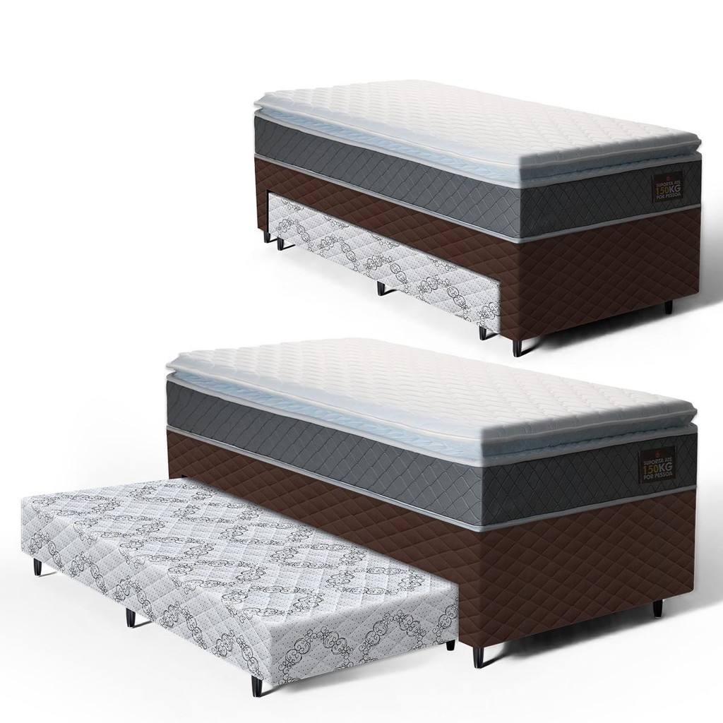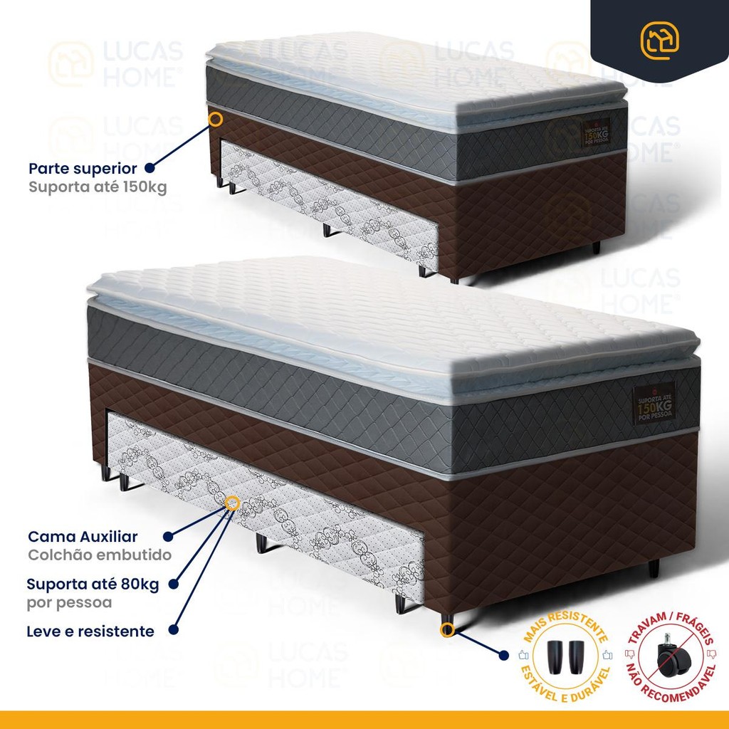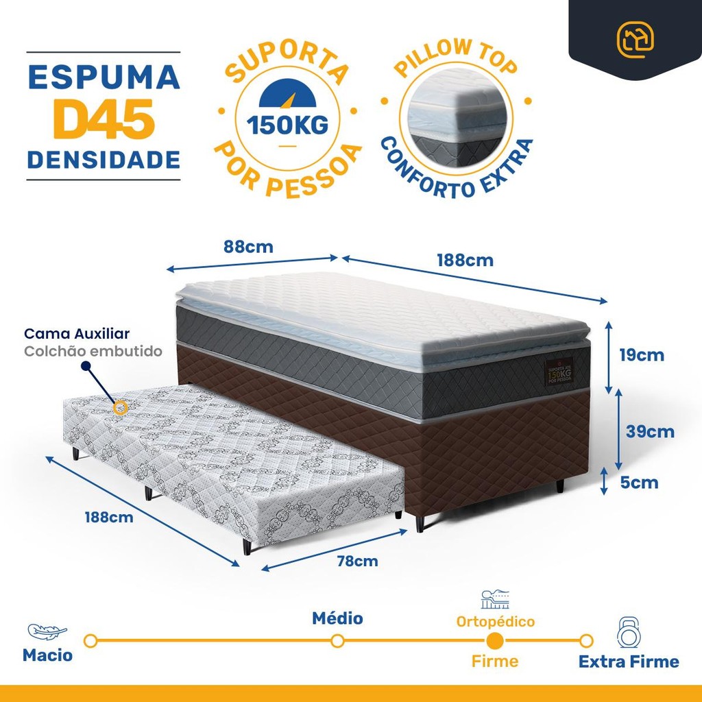 Cama Box com Colchao de Espuma D45 Pillow Top Fort Comfort + Auxiliar de Espuma Unique Solteiro 88cm