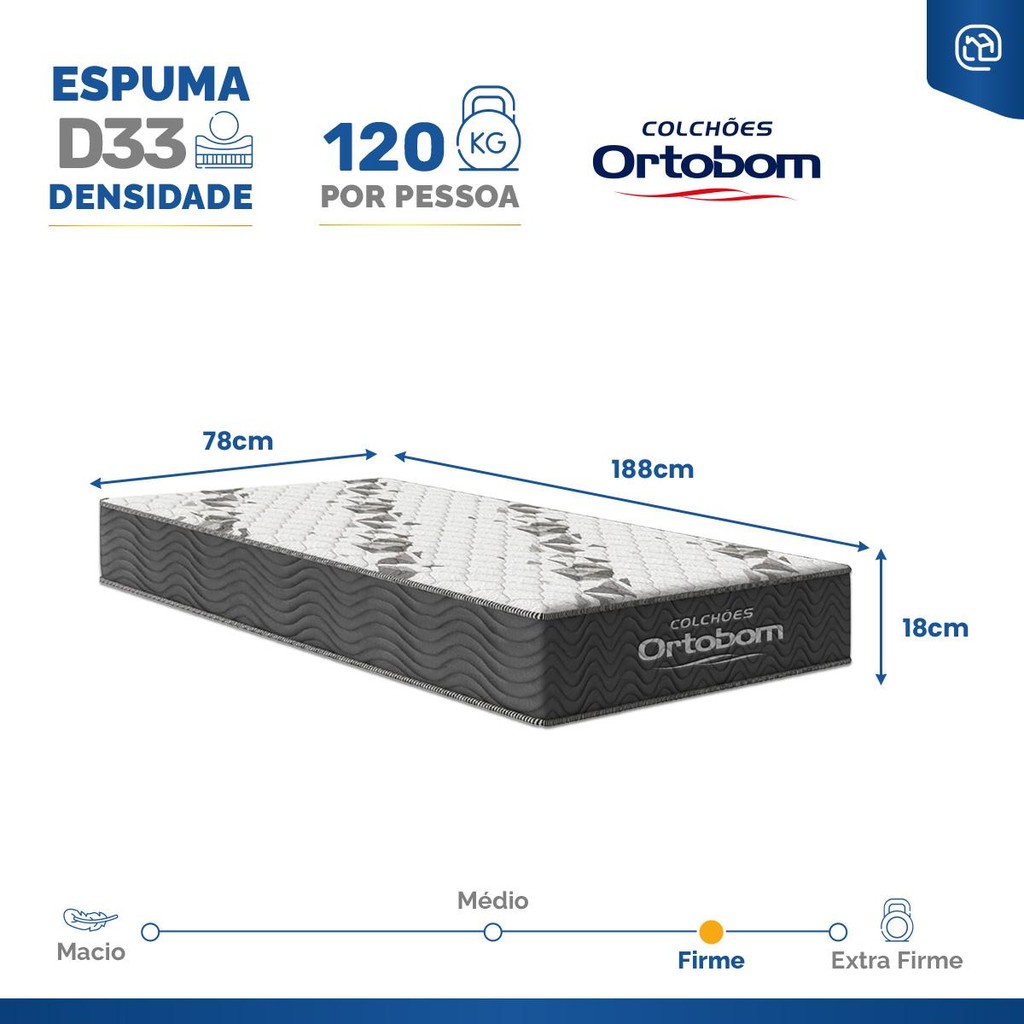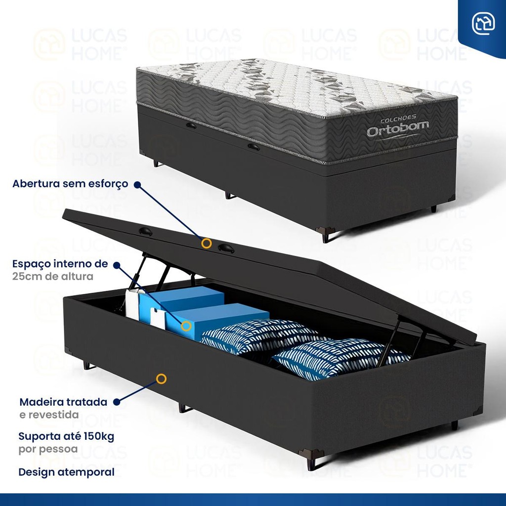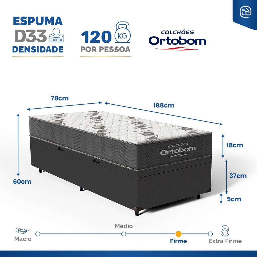 Cama Box Baú com Colchão de Espuma D33 Airtech 100 Ortobom Solteiro 78cm