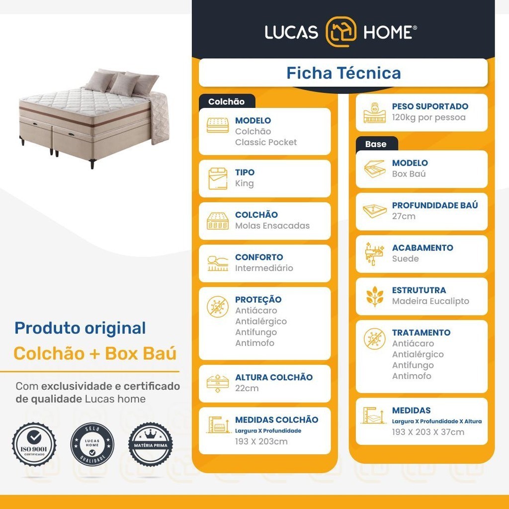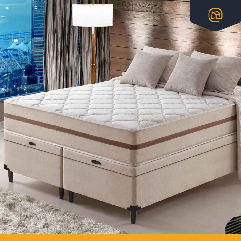 Cama Box Baú + Colchão Super King Classic Molas Pocket 193cm