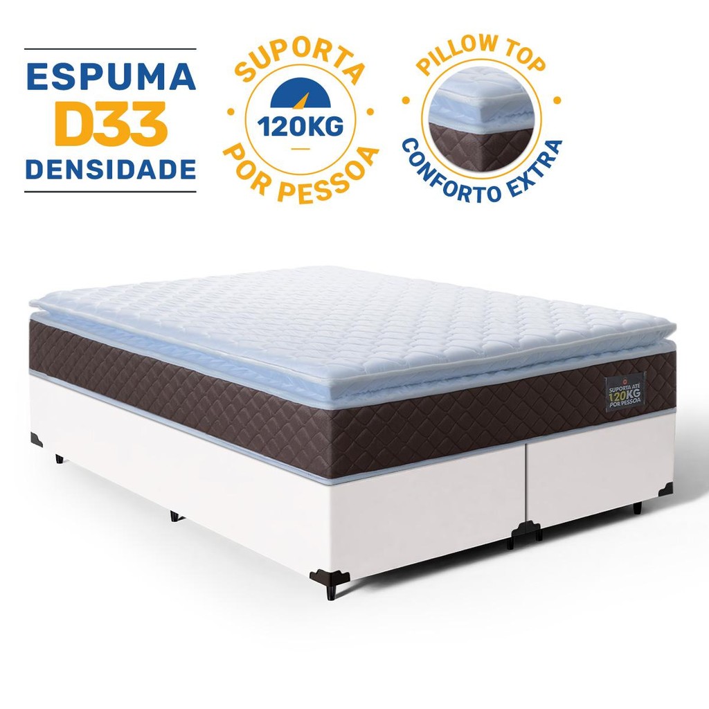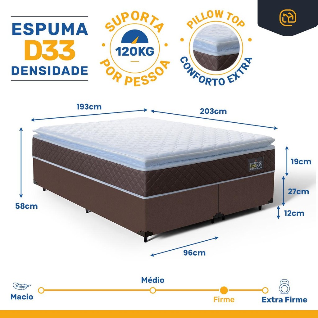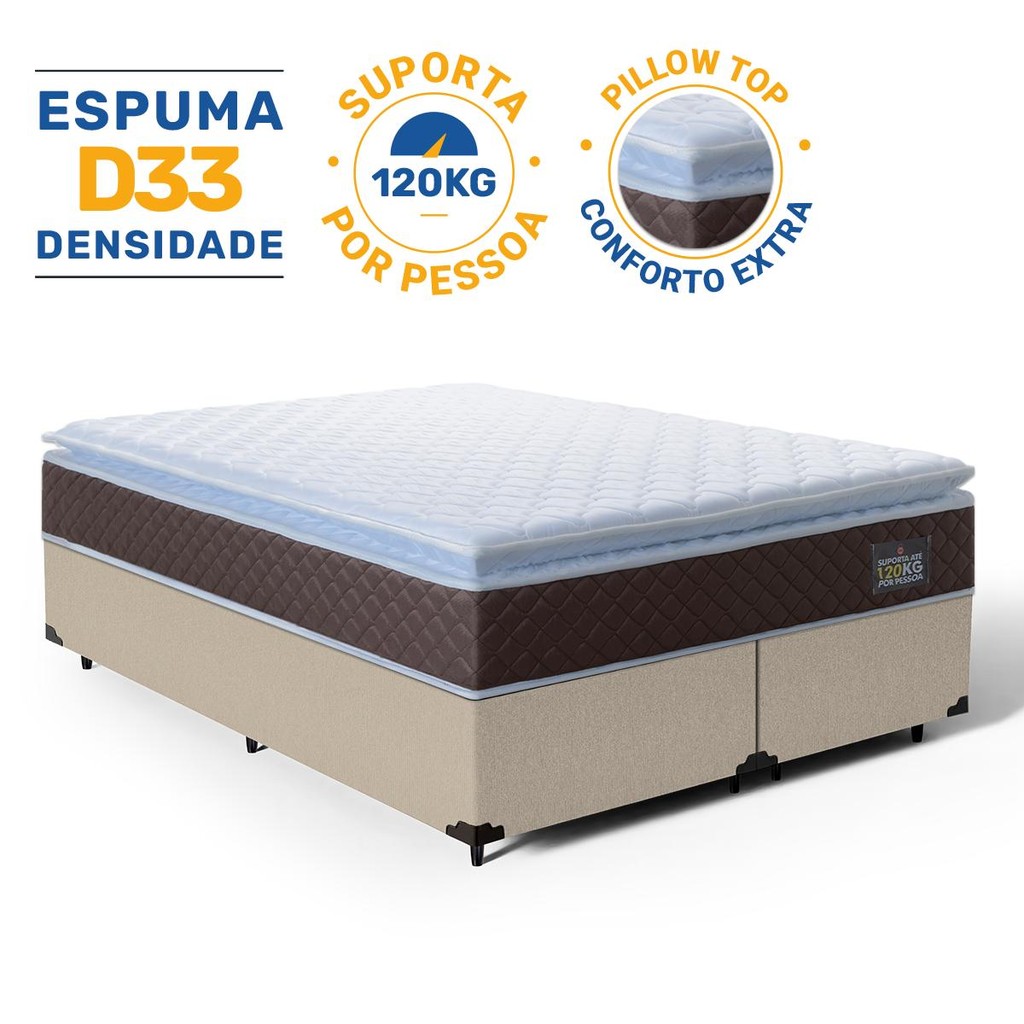 Cama Box com Colchão de Espuma D33 Pillow Top Comfort Luxo King 193cm