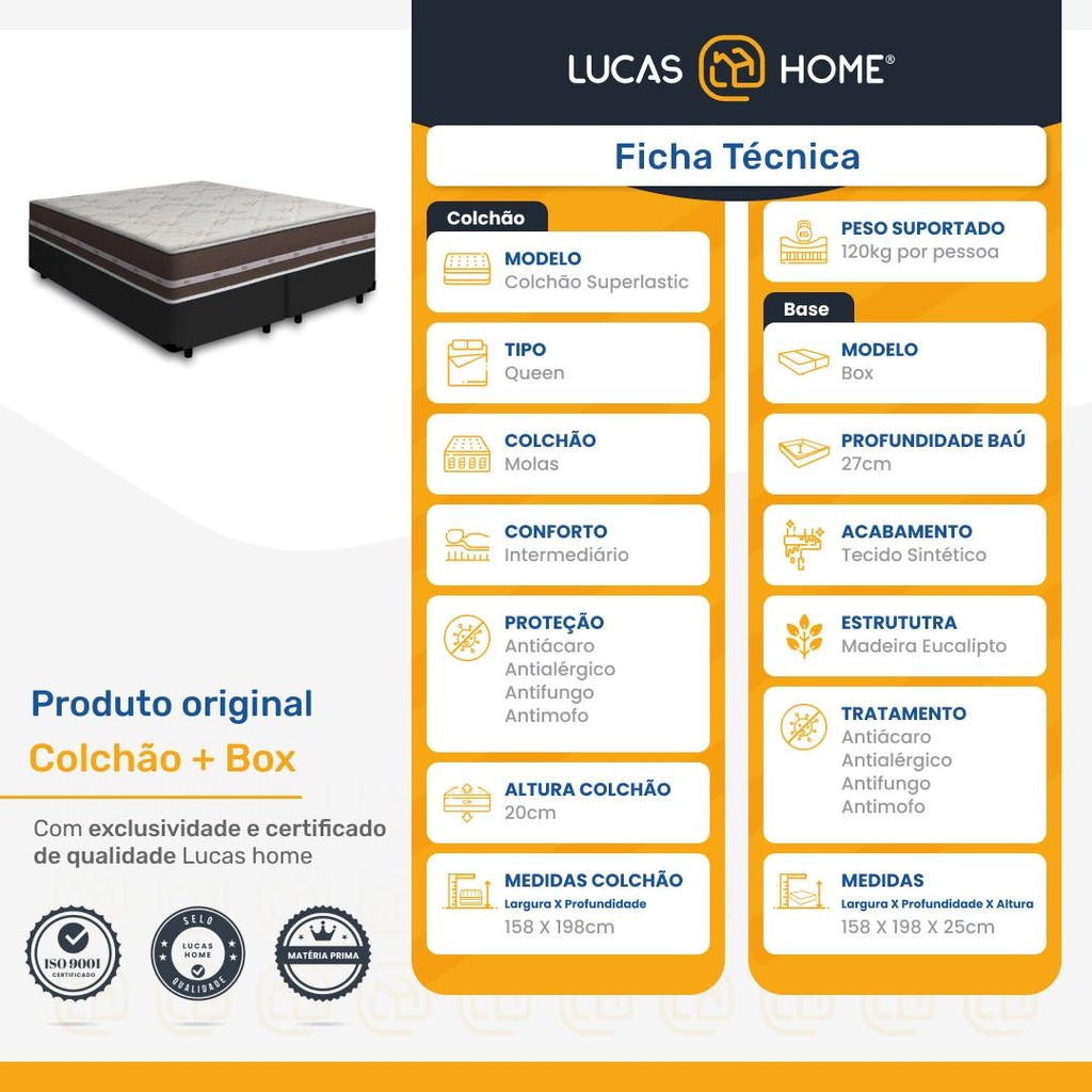 Cama Box com Colchão de Molas Ensacadas Anjos Classic Pocket Queen 158cm