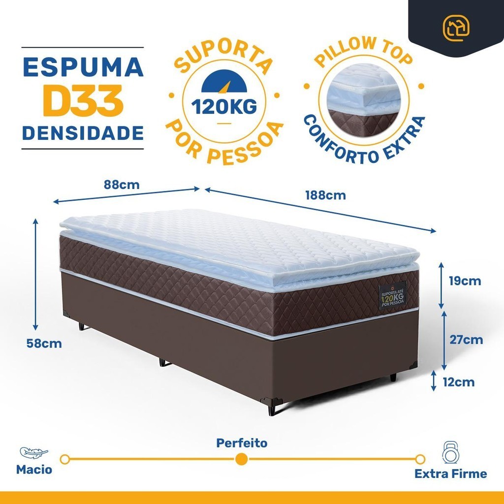 Cama Box com Colchão de Espuma D33 Pillow Top Comfort Luxo Solteiro 88cm