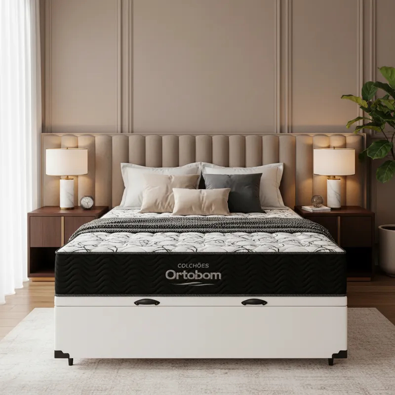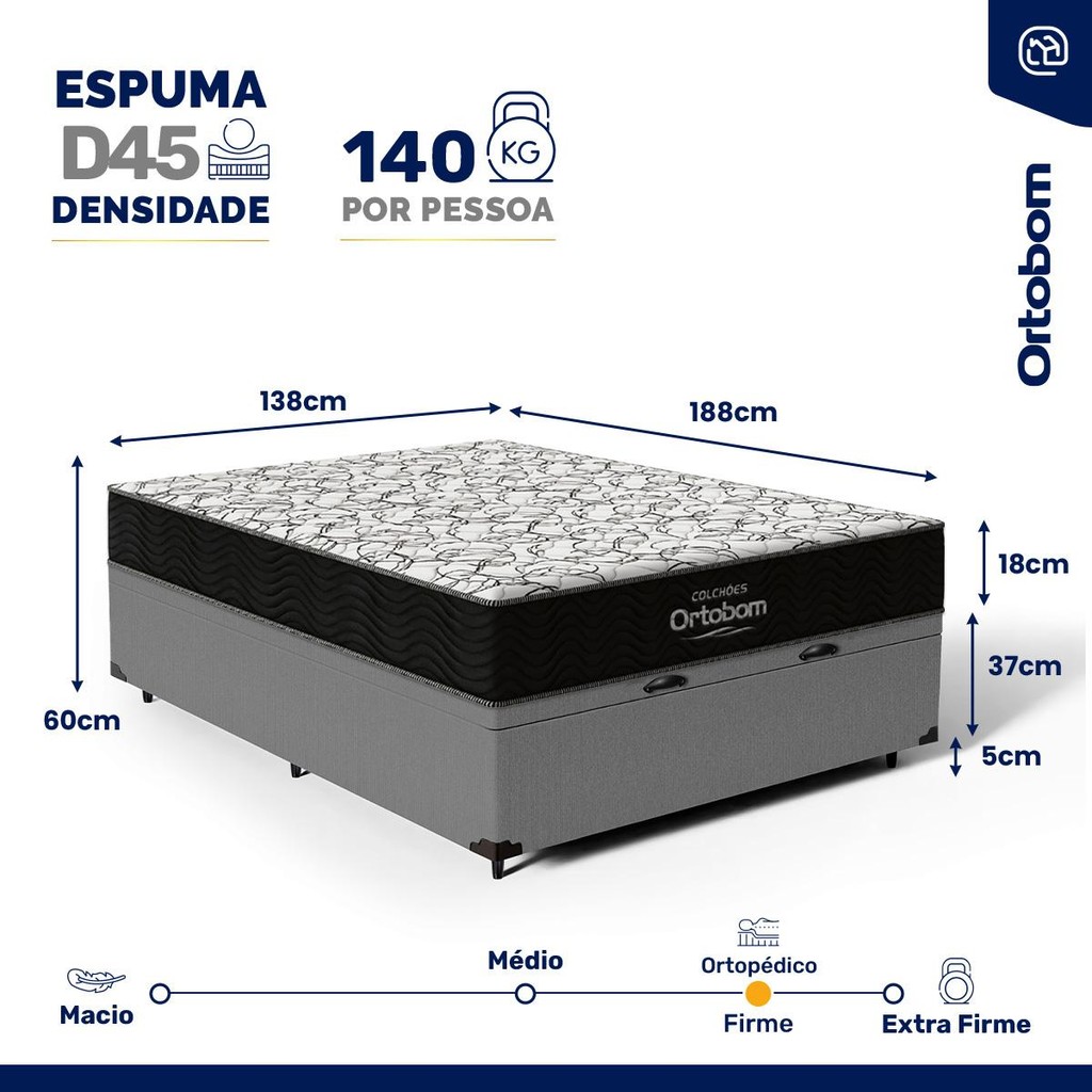 Cama Box Baú Casal com Colchão de Espuma D45 Ortobom Airtech 150