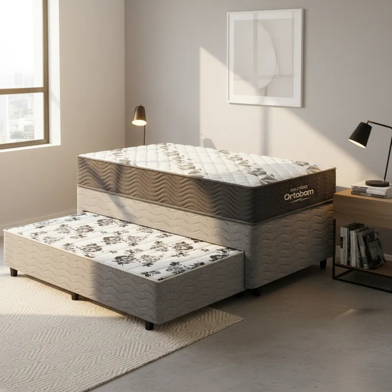 Cama Box com Colchão de Espuma D33 Ortobom Airtech 100 + Auxiliar de Espuma Unique Solteiro 88cm