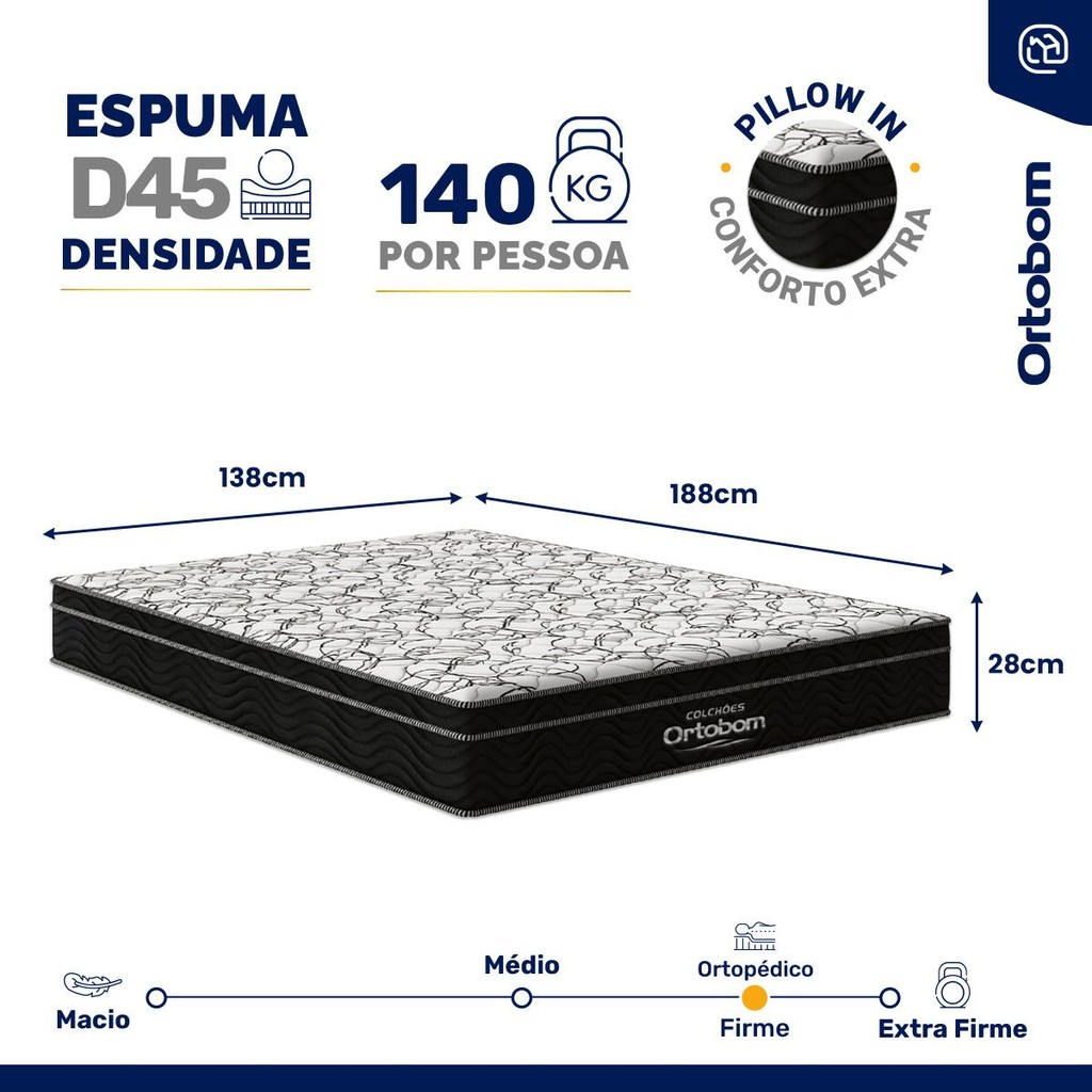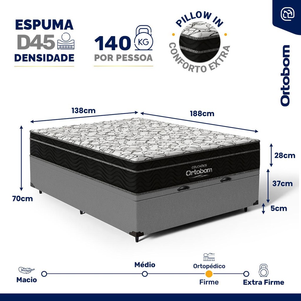 Cama Box Baú Casal com Colchão de Espuma D45 Ortobom Airtech Ortopillow 150