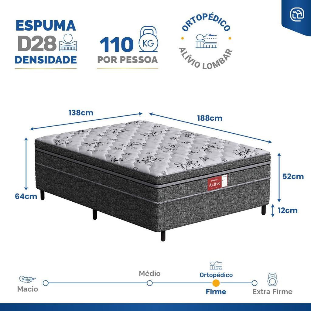 Cama Box Conjugada Probel Espuma D28 Ortopédico Unique Active Casal 138cm