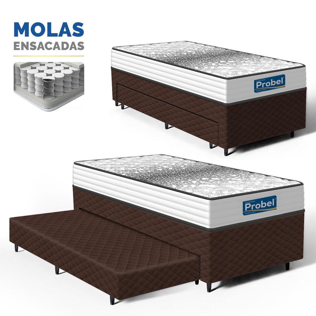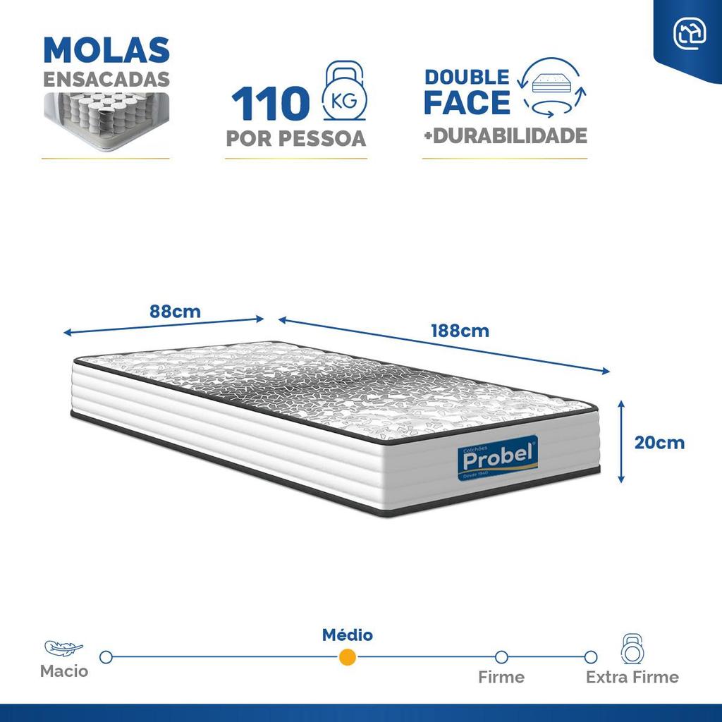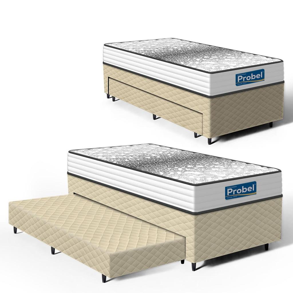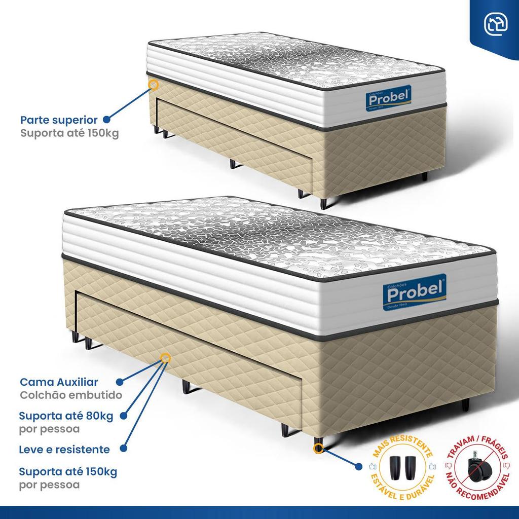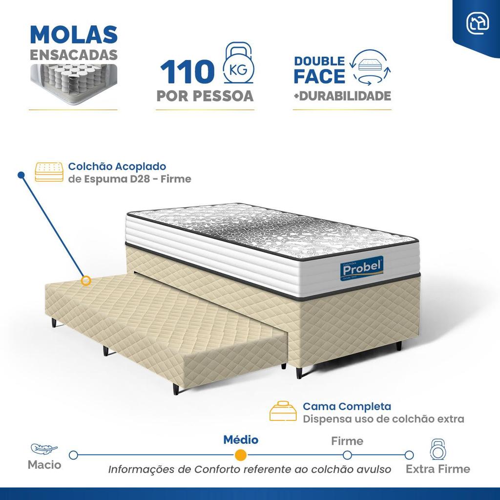 Box com Colchão de Molas Ensacadas Double Face Essence Probel + Auxiliar de Espuma Solteiro 88cm