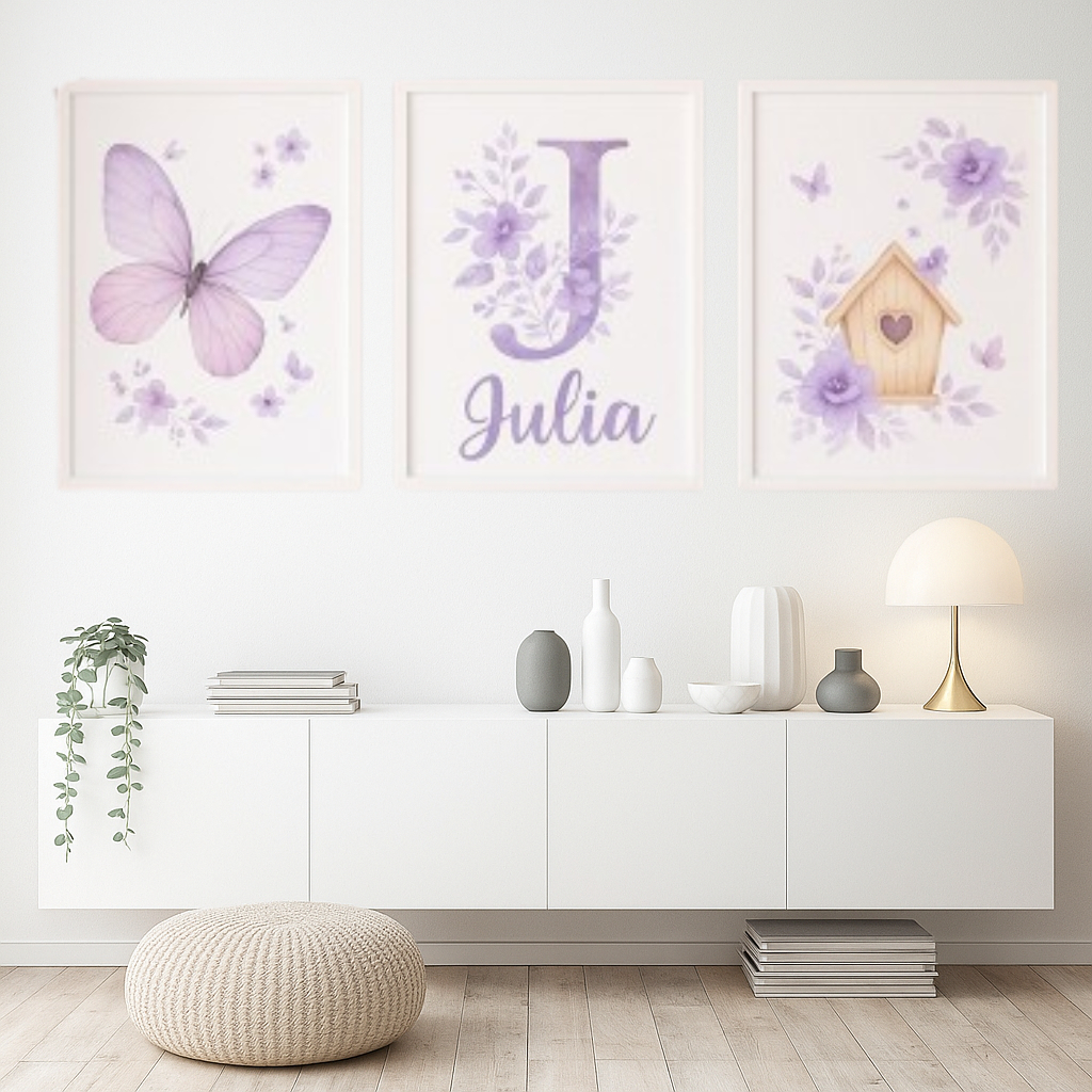 Quadros decorativos infantil menina Borboleta jardim lilás decoração para quarto infantil