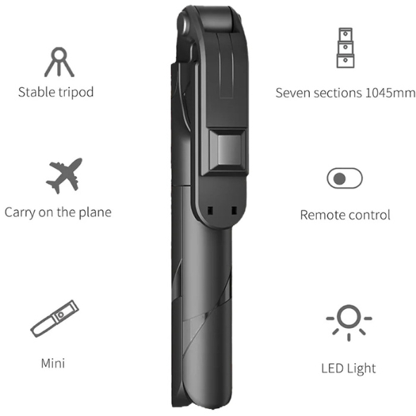 Bastão Pau De Selfie Retrátil Tripé Com Luz LED C/ Controle Bluetooth Para Celular