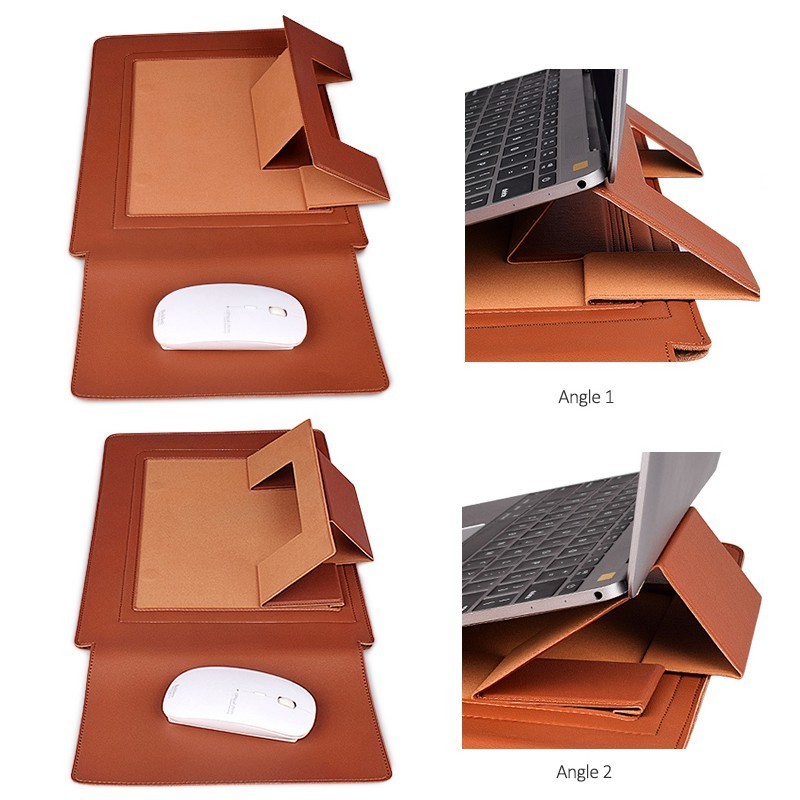 Laptop Saco De Manga Para Macbook Air Pro Couro PU 13/16 Polegada Notebook Bolsa Com Suporte Do Mouse Pad