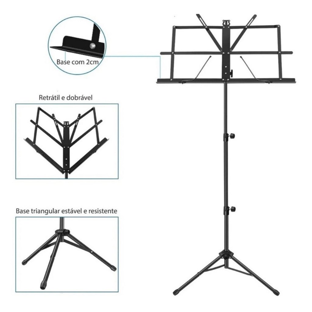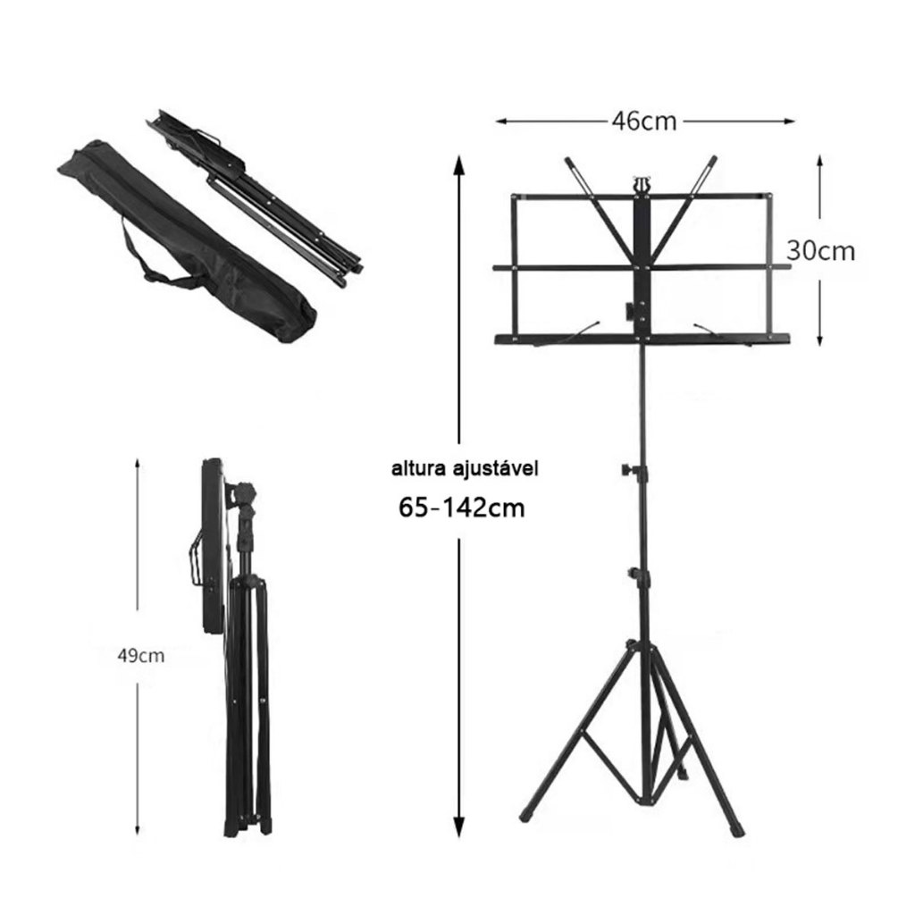 Estante Partitura Suporte Pedestal Cavalete Bolsa Ferro