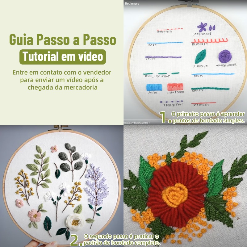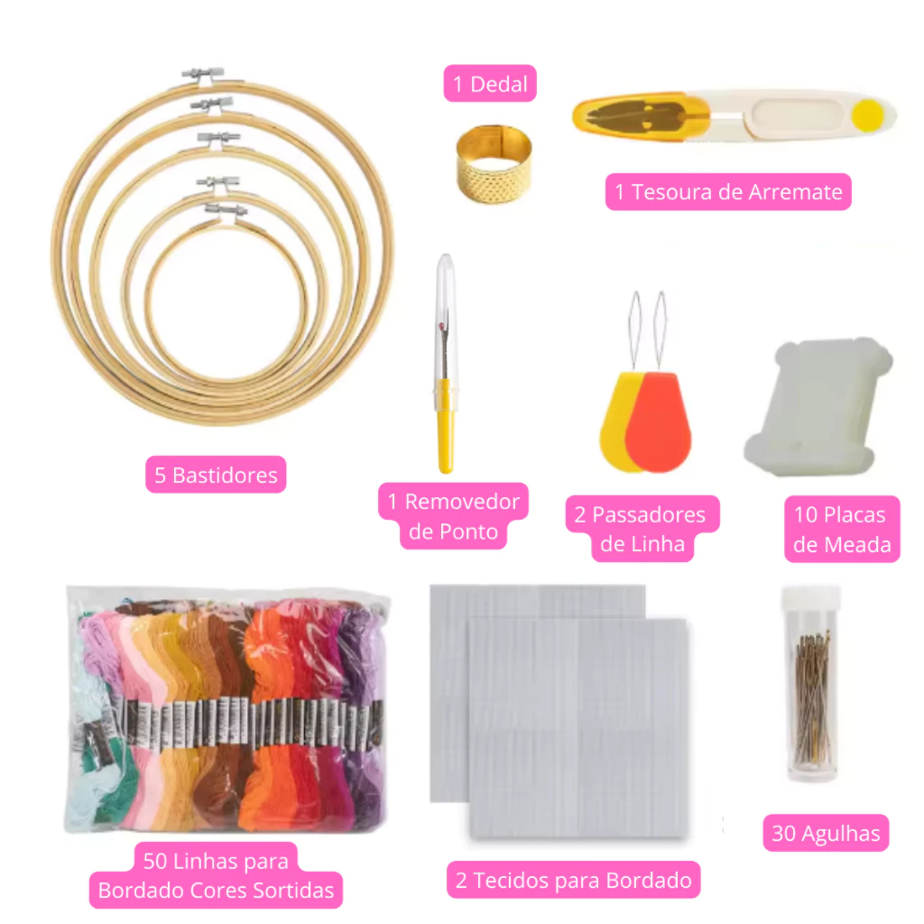 Kit para Bordado Ponto Cruz para Bordar Iniciante Completo Com Tutorial em vídeo