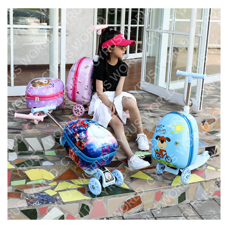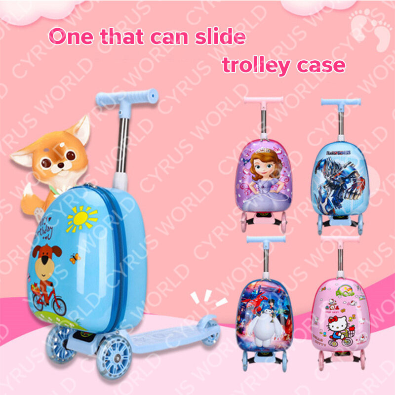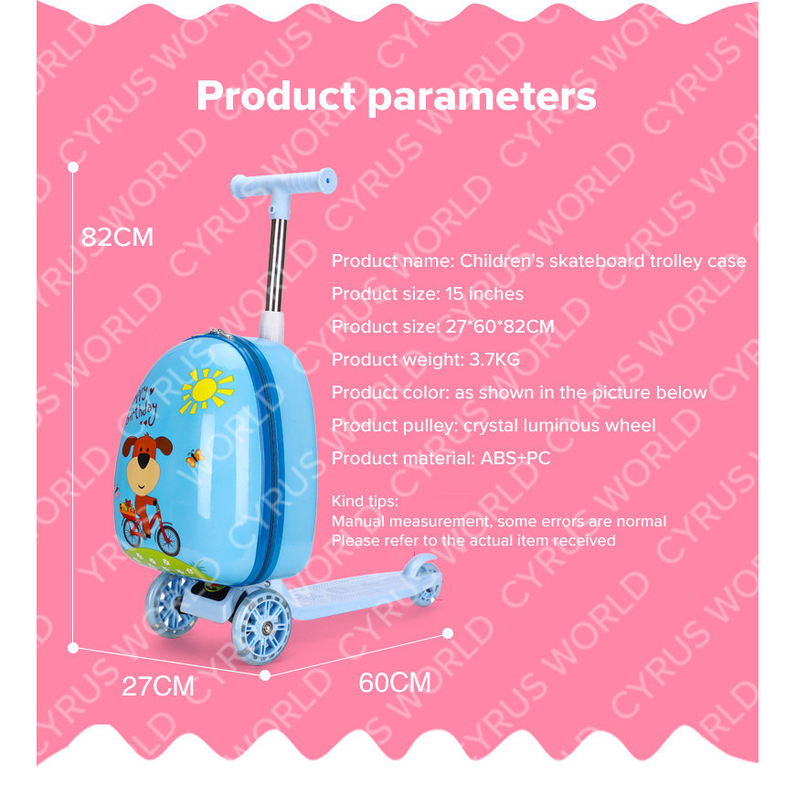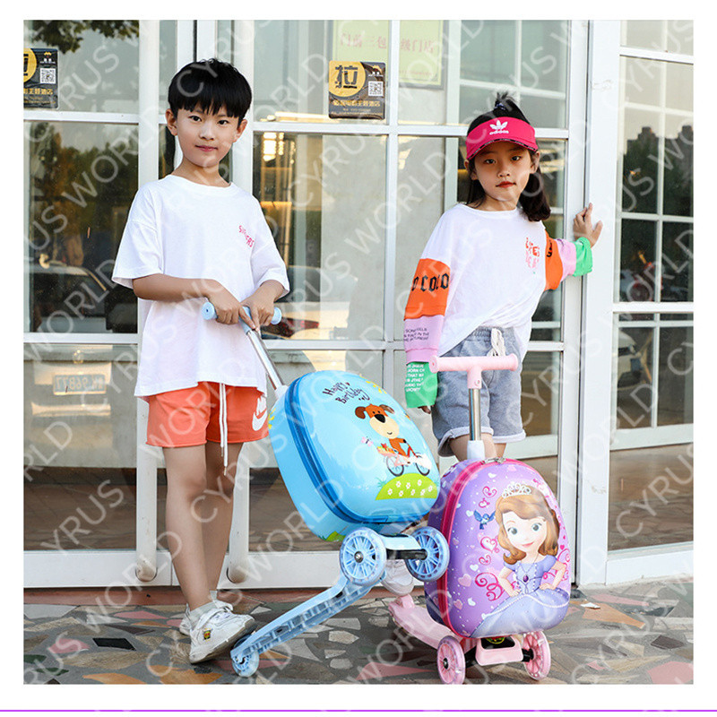 Mala Infantil De 15 Polegadas Para scooter De Desenho Animado Iluminada Caixa De Viagem Com Roda Pode Ser Montada Fofa E Arrastada O Chassi
