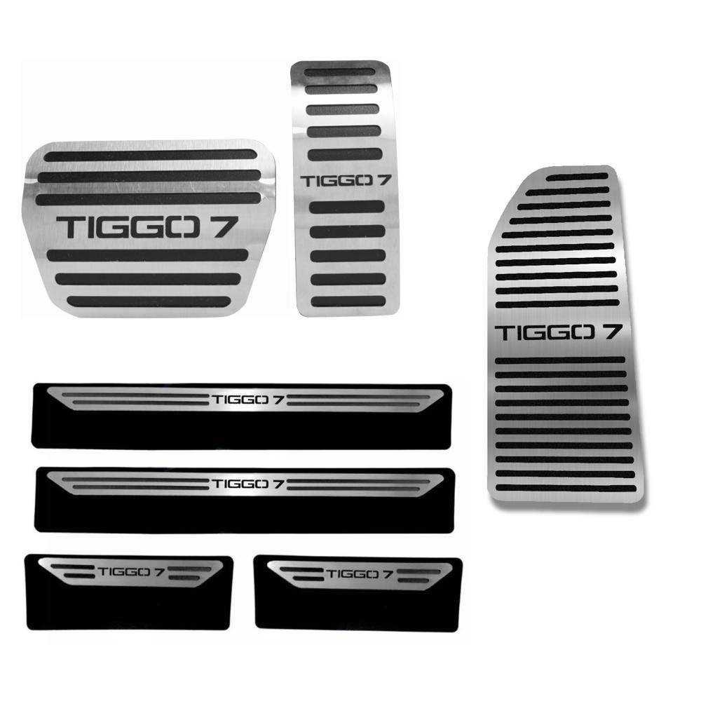Kit Pedaleira + Descanso de Pé + Soleira Proteção Porta Inox Chery Tiggo 7 Automático