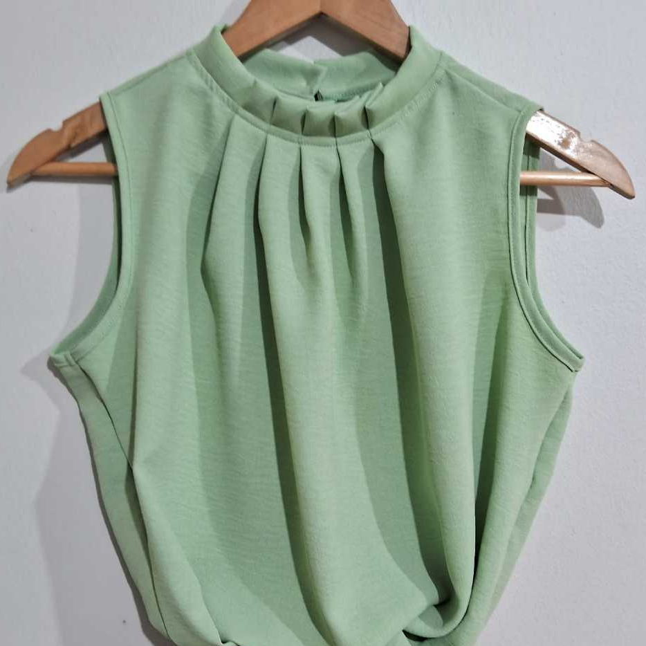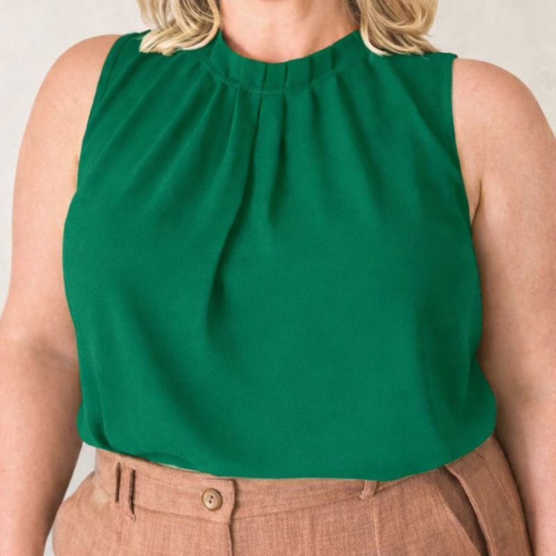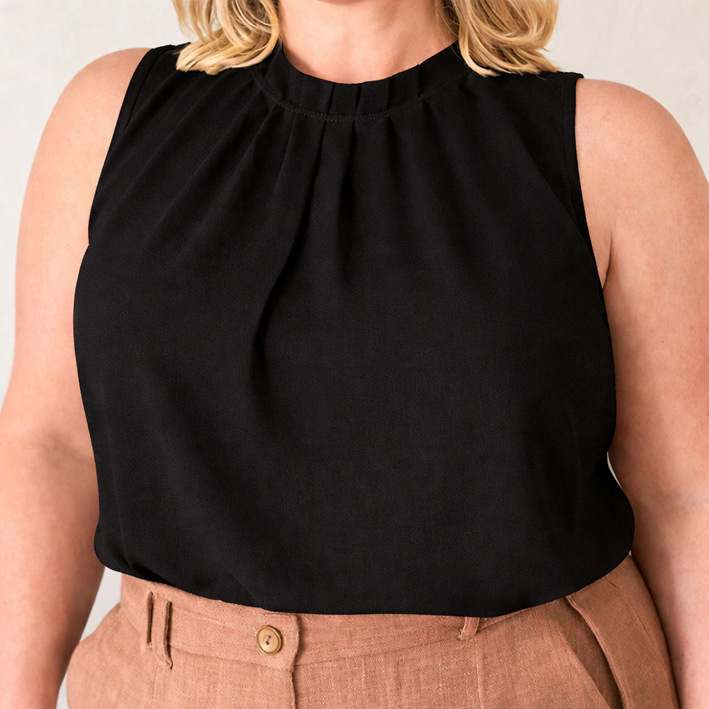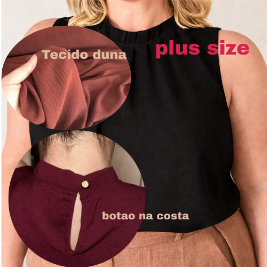 Blusa Feminina Duna Plus Size G1 G2 • Sem Manga • Gola Plissada Elegante • Confortável e Moderna