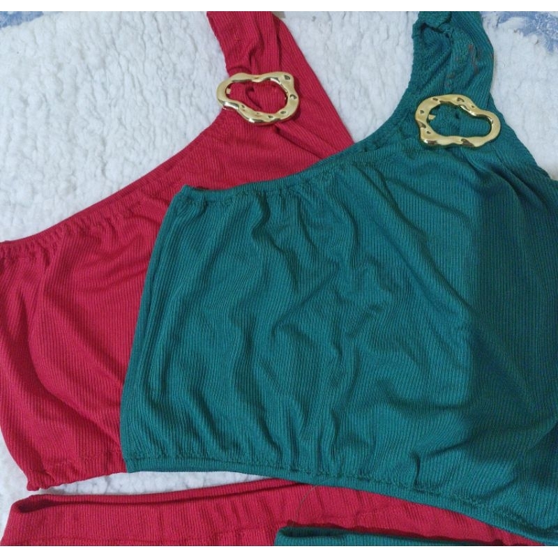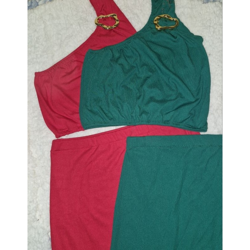 LANÇAMENTO conjunto saia midi e cropped manga mula com fivela dourada tamanho único veste PMG tecido ribana com elastano
