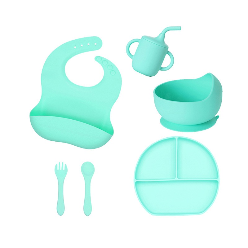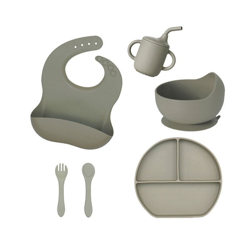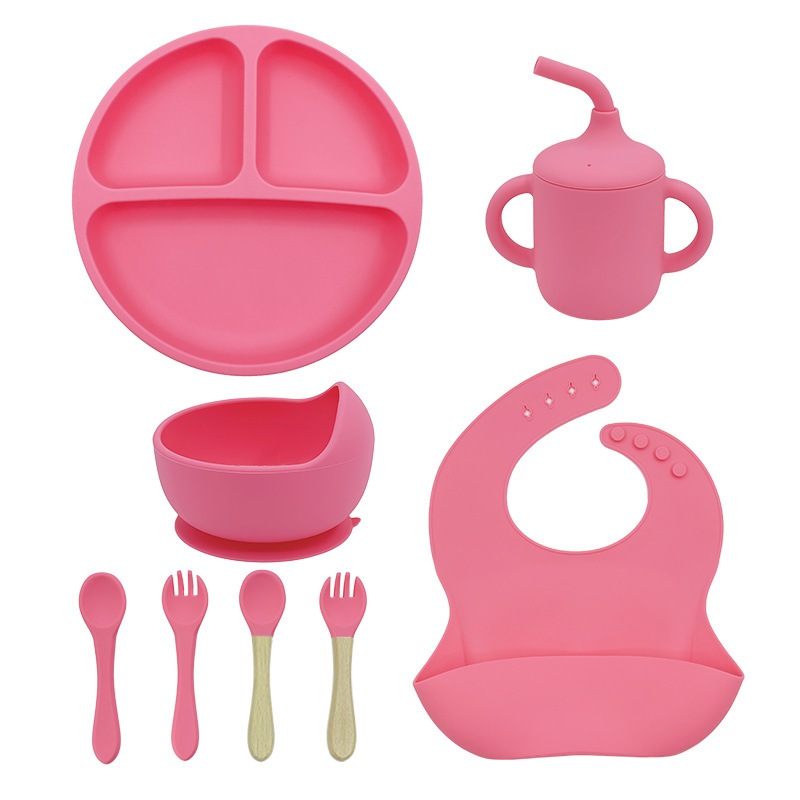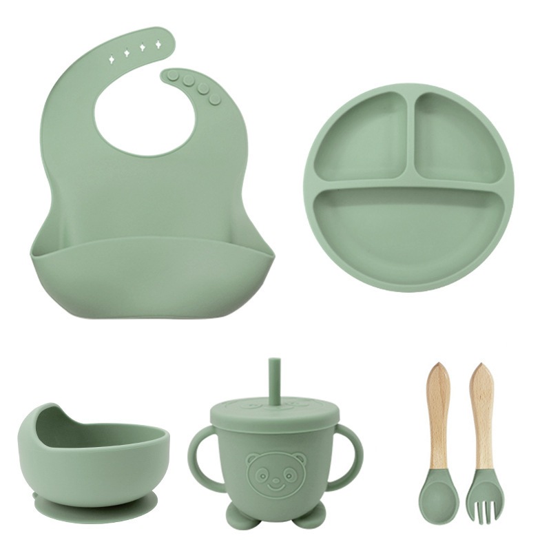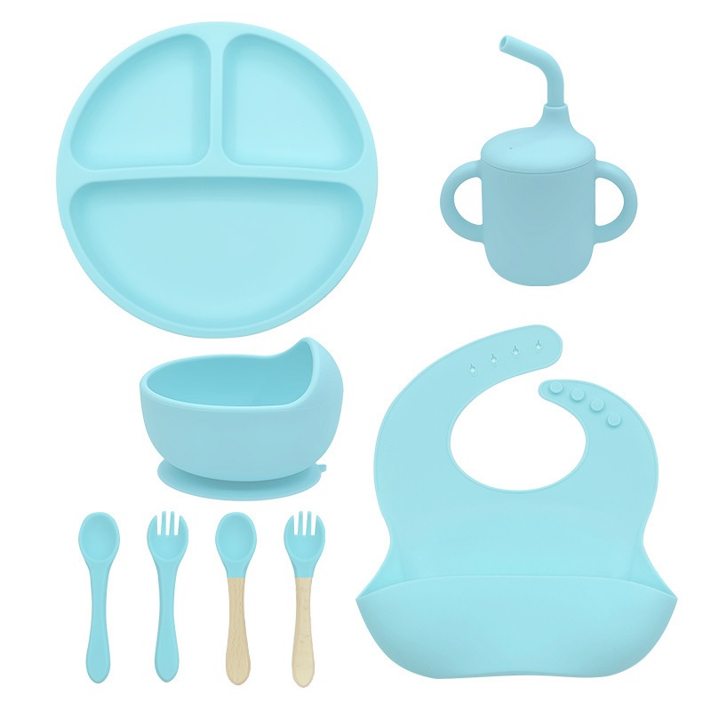 Kit Talheres bebê silicone 4/6/8 Peças Talheres Infantil Com Ventosa Canudo Colher Babador Garfo