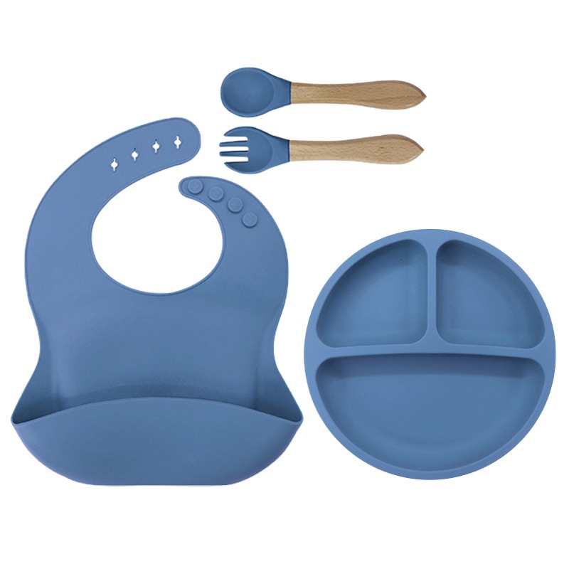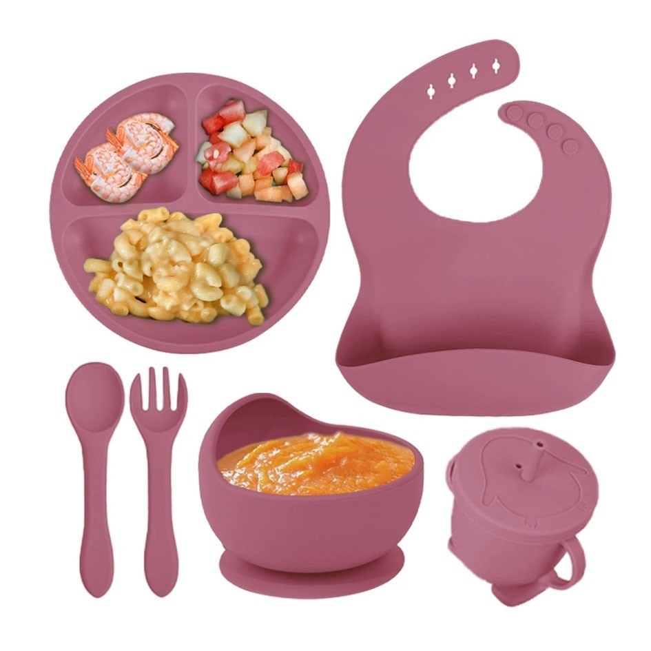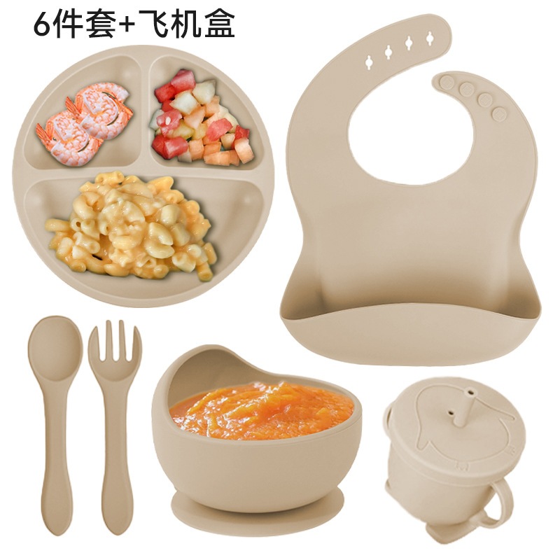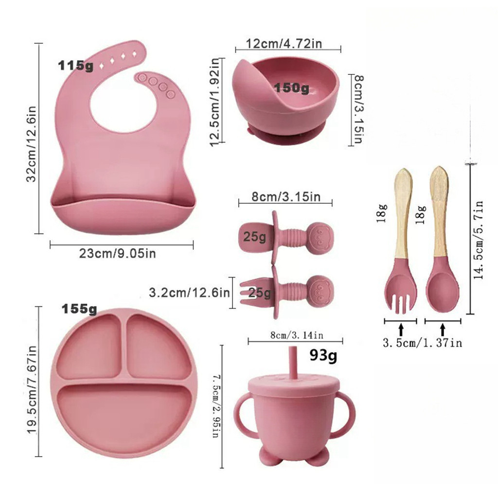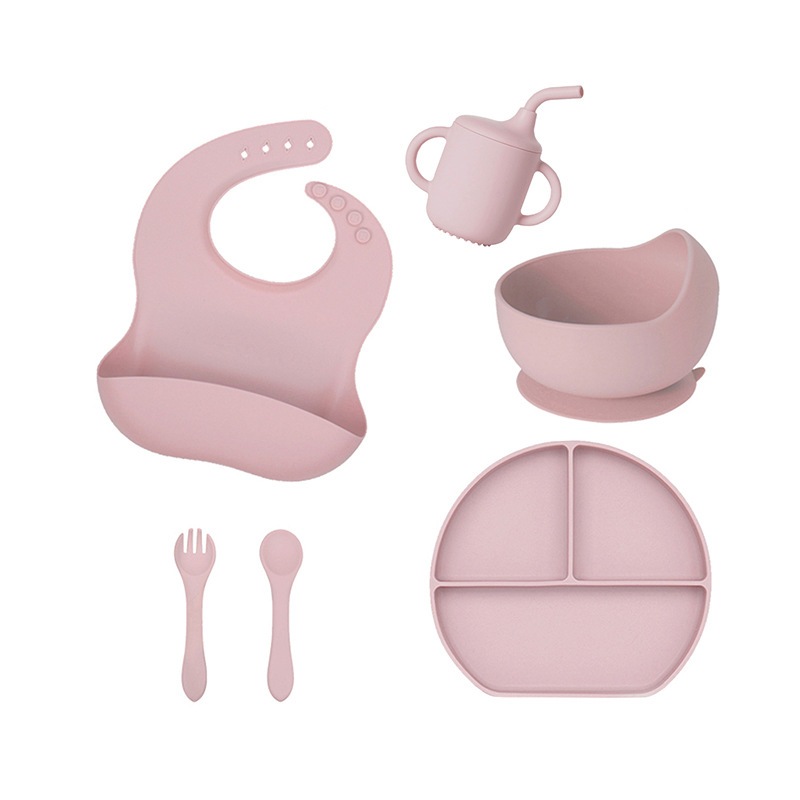 Kit Talheres bebê silicone 4/6/8 Peças Talheres Infantil Com Ventosa Canudo Colher Babador Garfo
