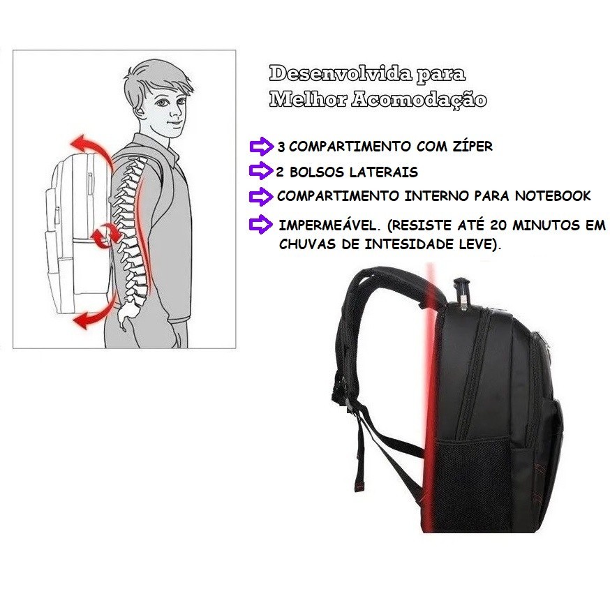 Mochila Escolar Reforçada Notebook Impermeável Cabo De Aço