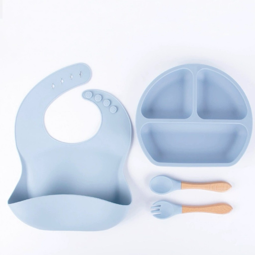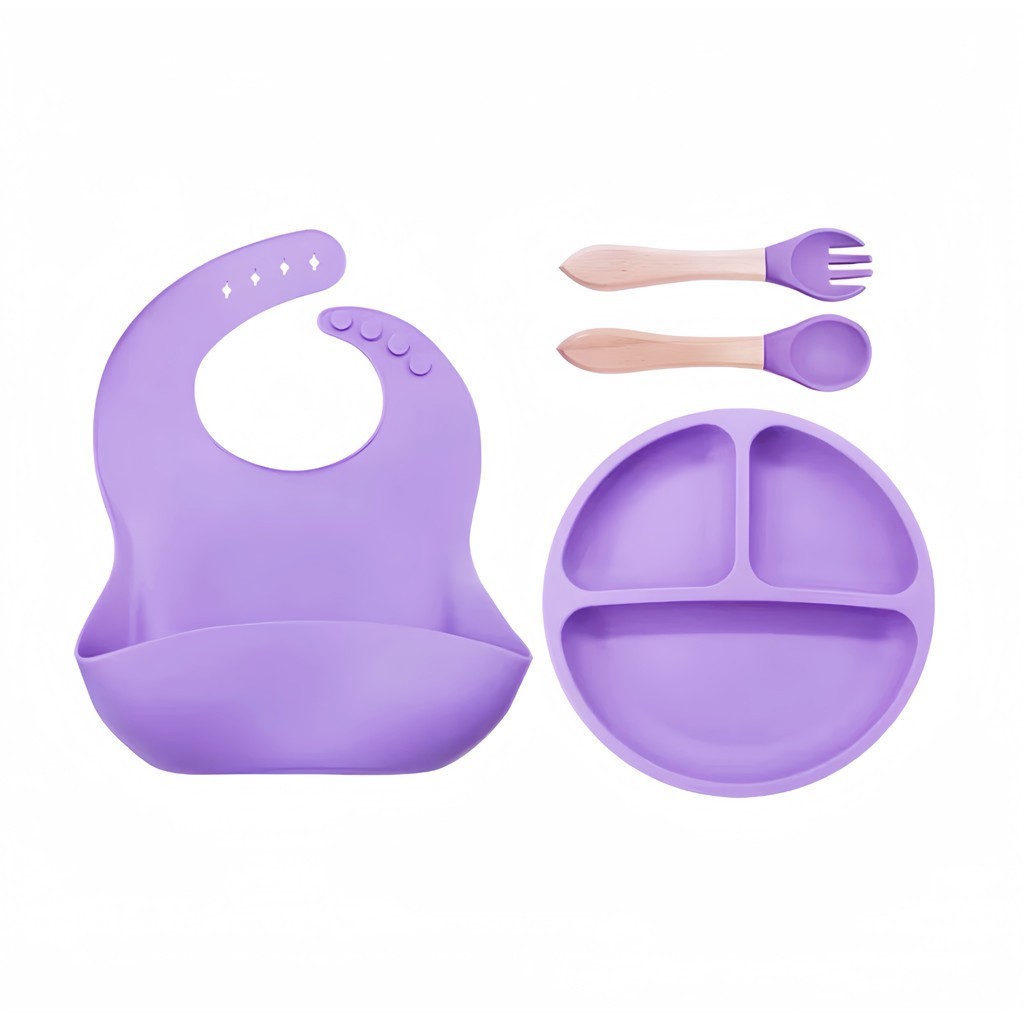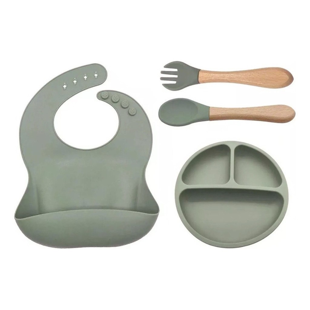 Kit Talheres bebê silicone 4/6/8 Peças Talheres Infantil Com Ventosa Canudo Colher Babador Garfo