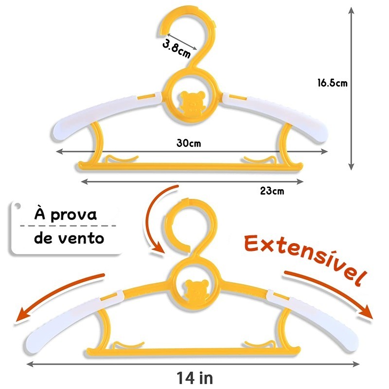 Kit Cabide Para Roupa de Bebê Ajustavel Roupa Da Criança de 0-8 anos antiderrapante com gancho ajustável