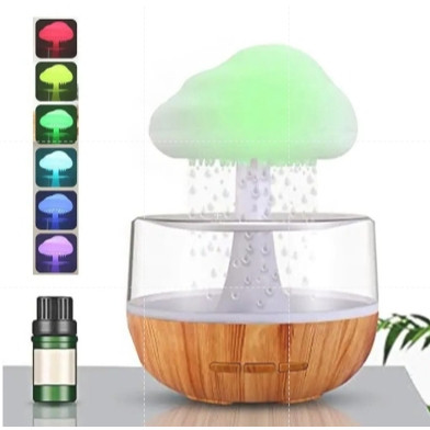 Umidificador Difusor De Aroma De design Nuvem e Chuva 7 Cores Luz Noturna Doméstica