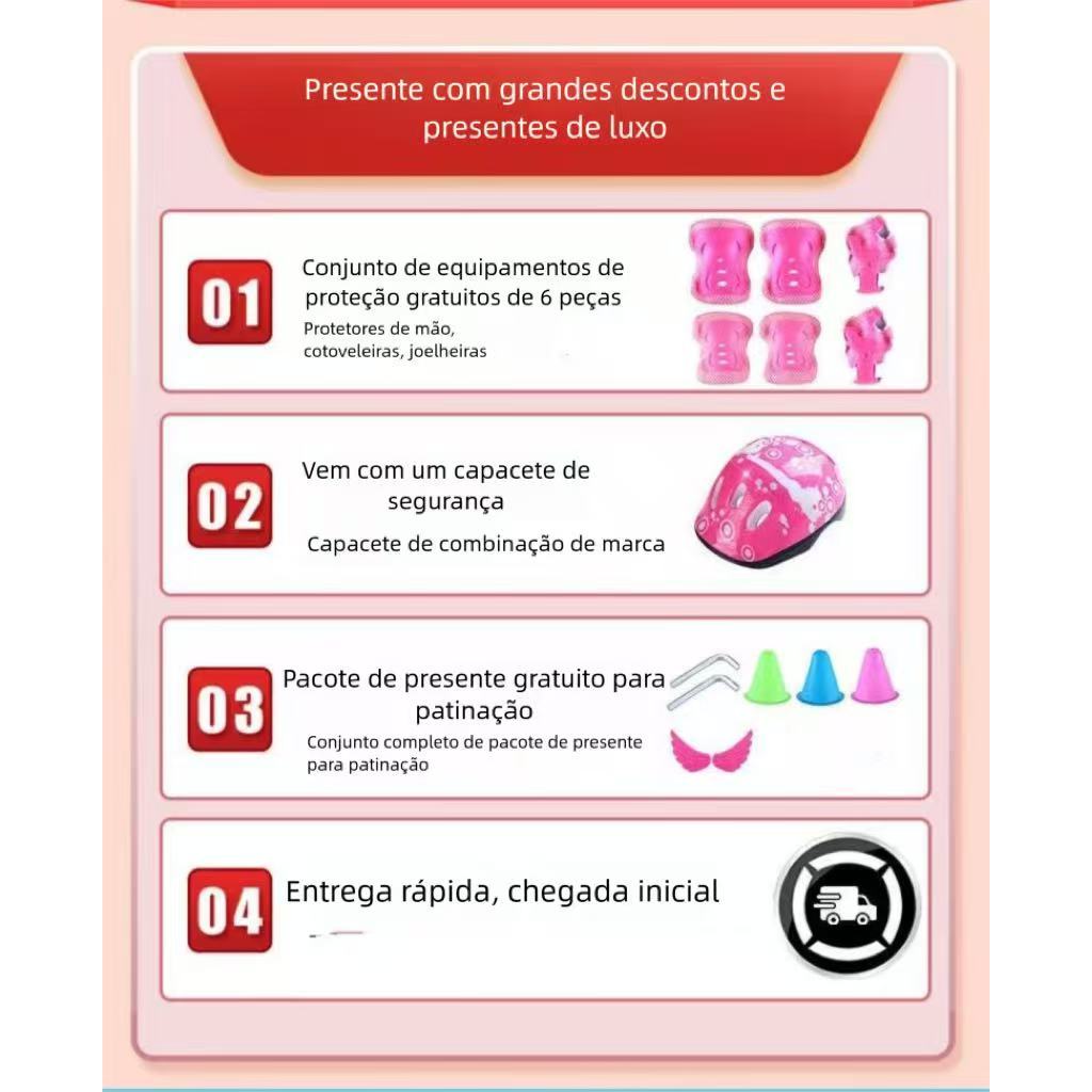 Patins Inline Infantis Tamanho Ajustável 26-32 / 33-37 / 38-42 + LED + Kit de Proteção--6038