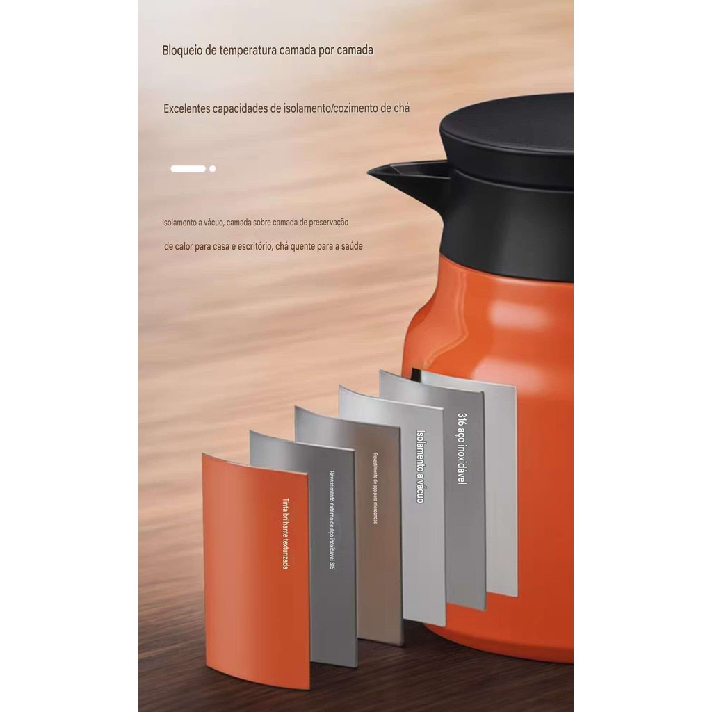 1 Litro Chaleira Térmica Bule em Aço Inoxidável de Café 316 para uso doméstico para uso em escritório P1849