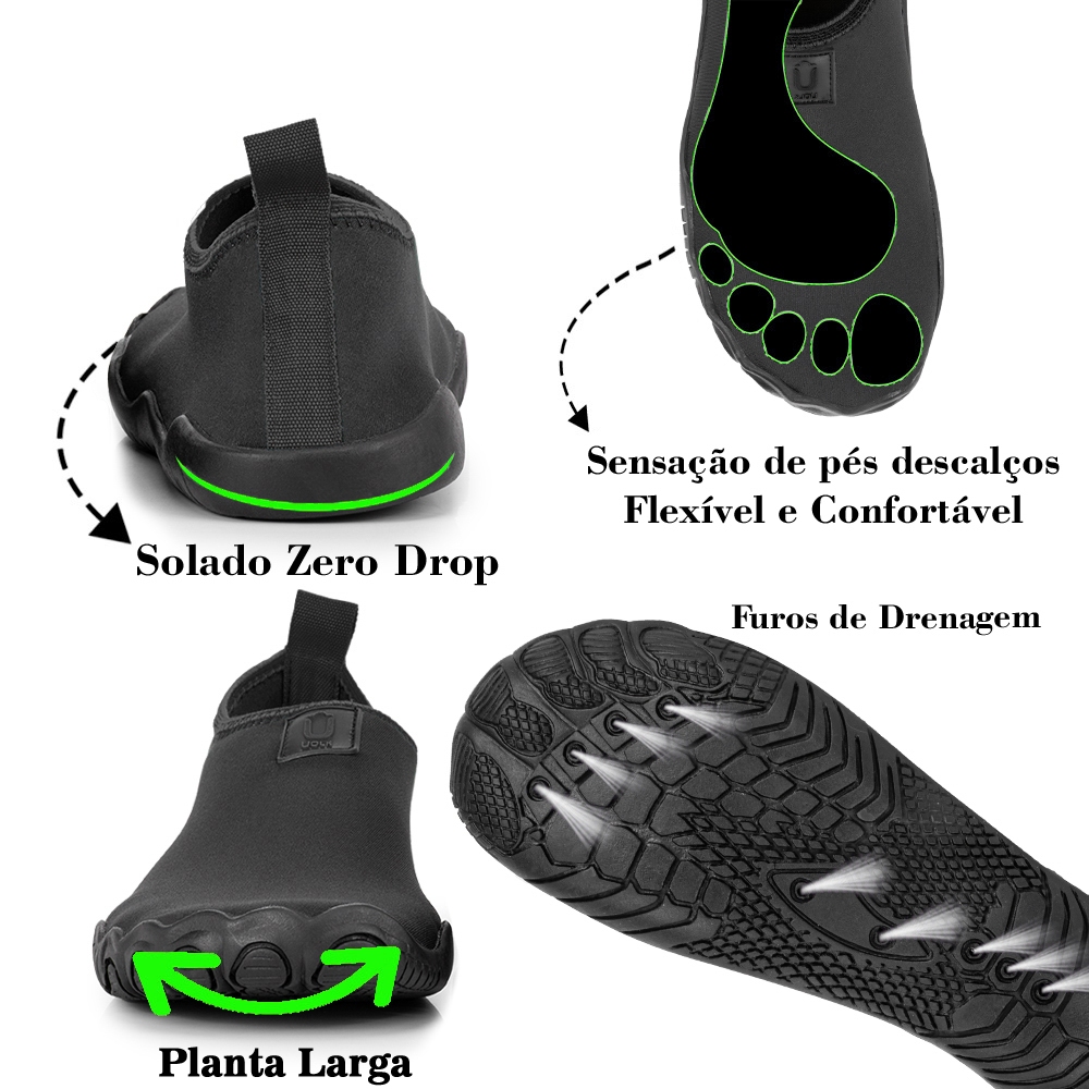 Sapatilha aquática unissex Calce facil Preto com Preto