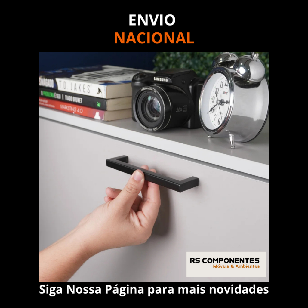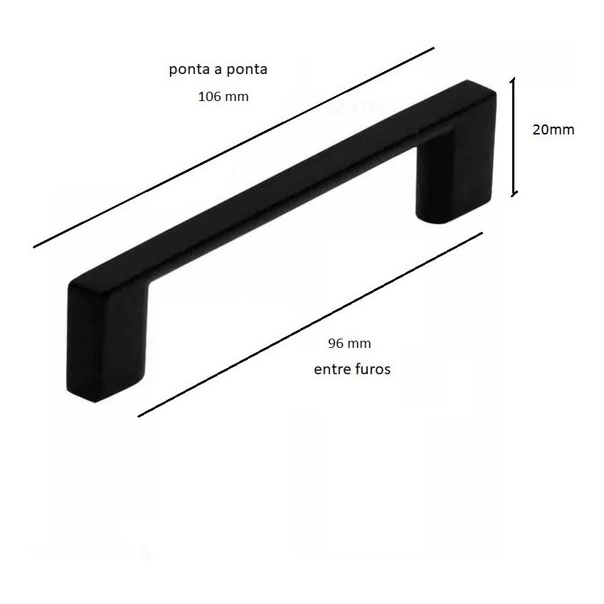 Puxador Haste Tango Preto Fosco 96 ou 160mm Kit 10 UNI