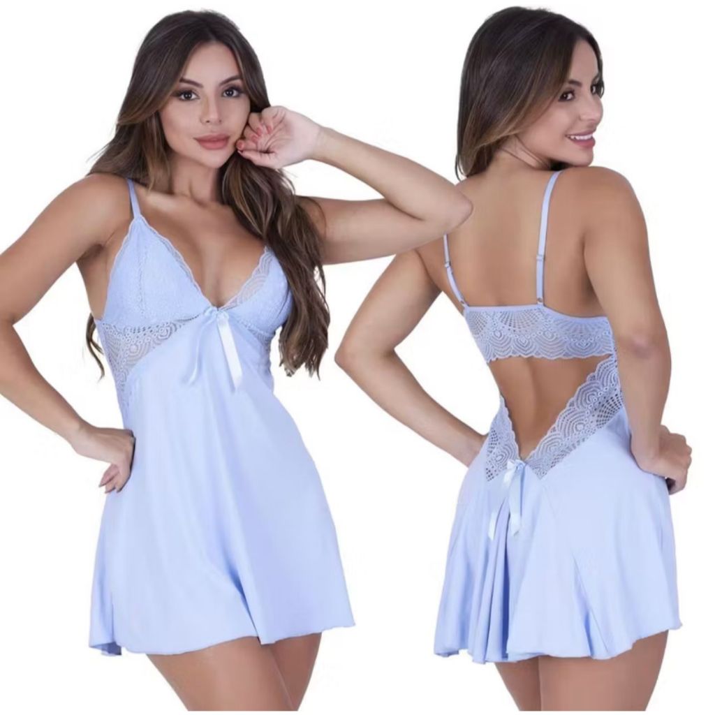 Kit Camisola Feminina Brenda sem Bojo Costas Aberta Lingerie Linha Noite Pijama Soltinha