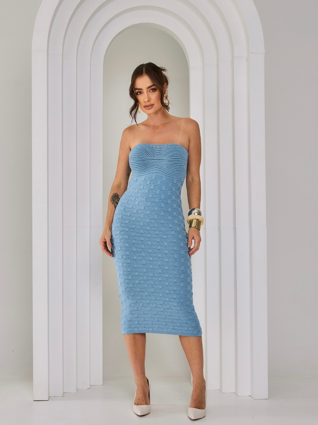 Vestido Tomara que Caia Tricot Modal Feminino Longo Canelado Versátil Elegante Liso