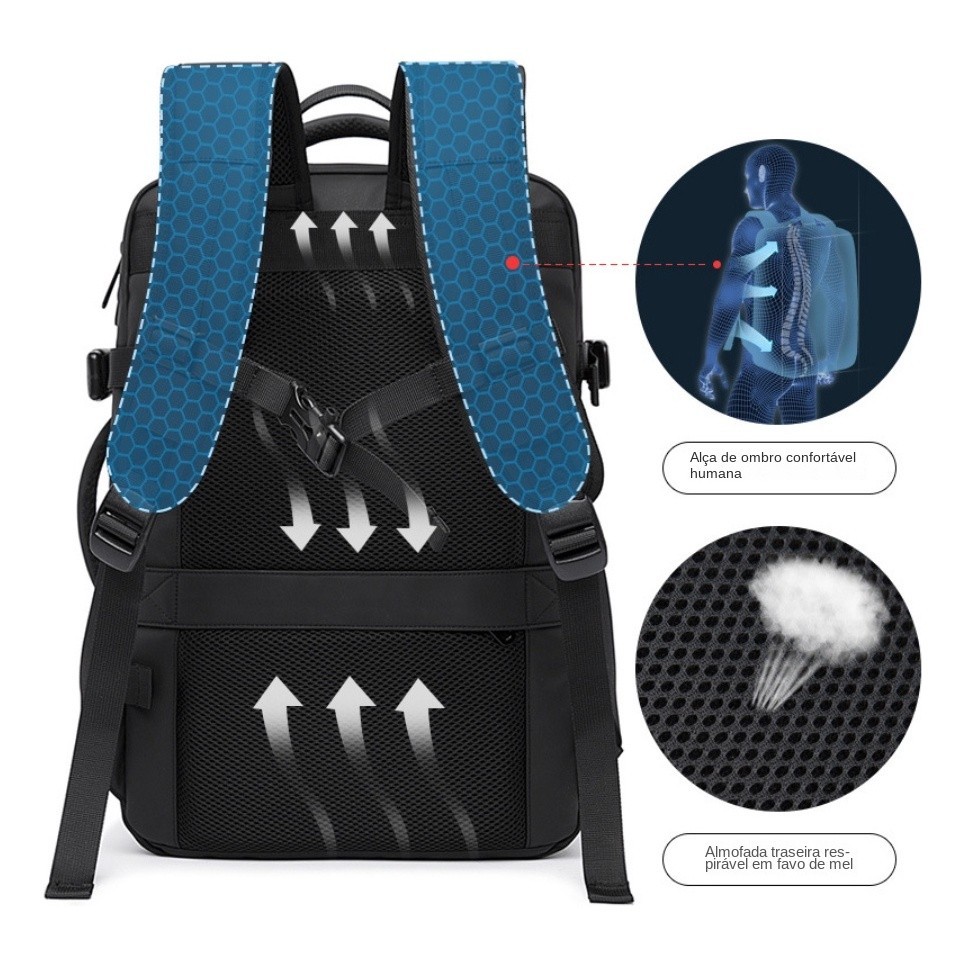 Mochila Mala Viagem De Bordo Executiva Expansível Até 45l Alta qualidade