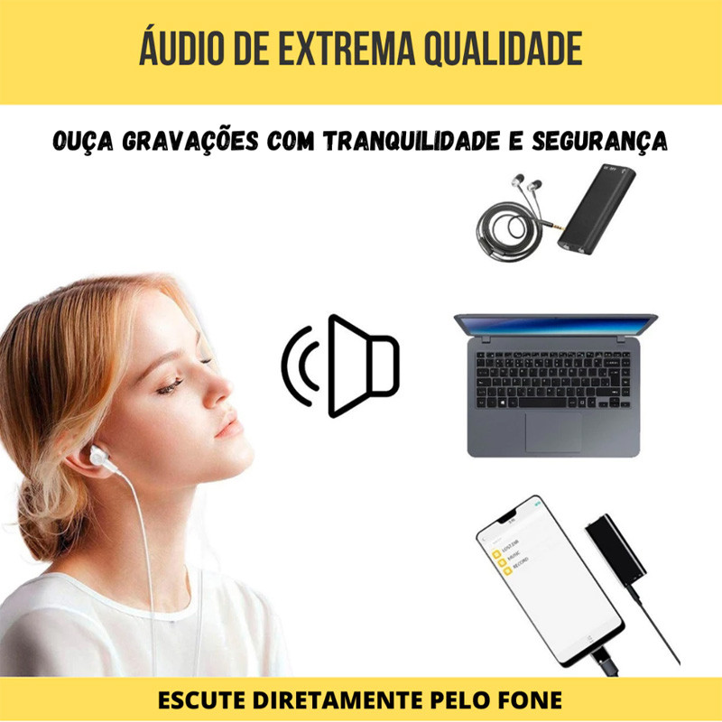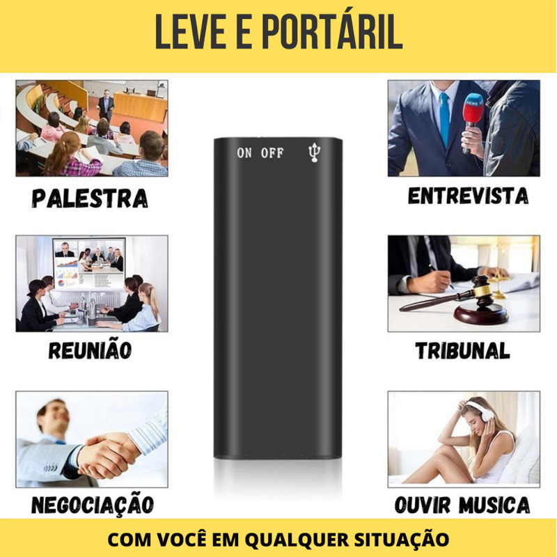 Mini Gravador de Voz Grava 96 Horas - Micro Escuta Profissional 8GB