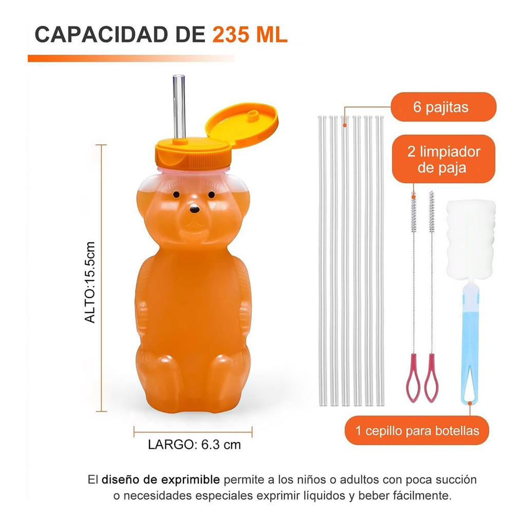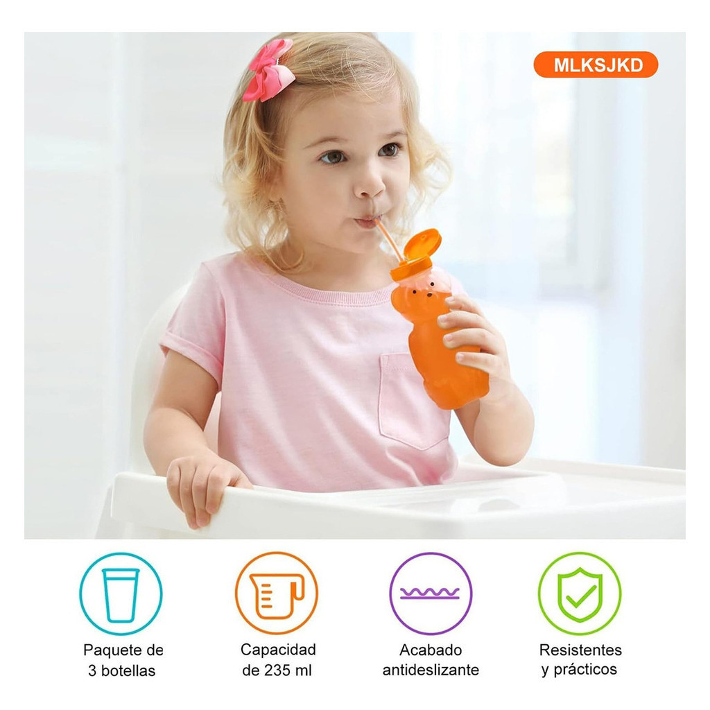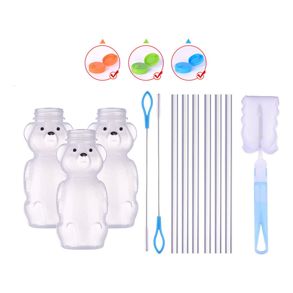 3 Peças Mamadeiras Com 6 Canudos E Kit De Limpador 230ml