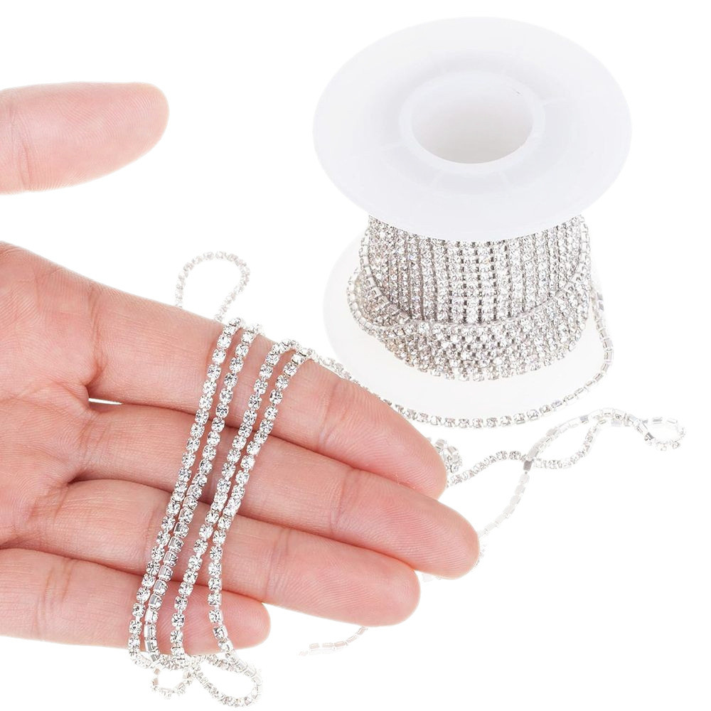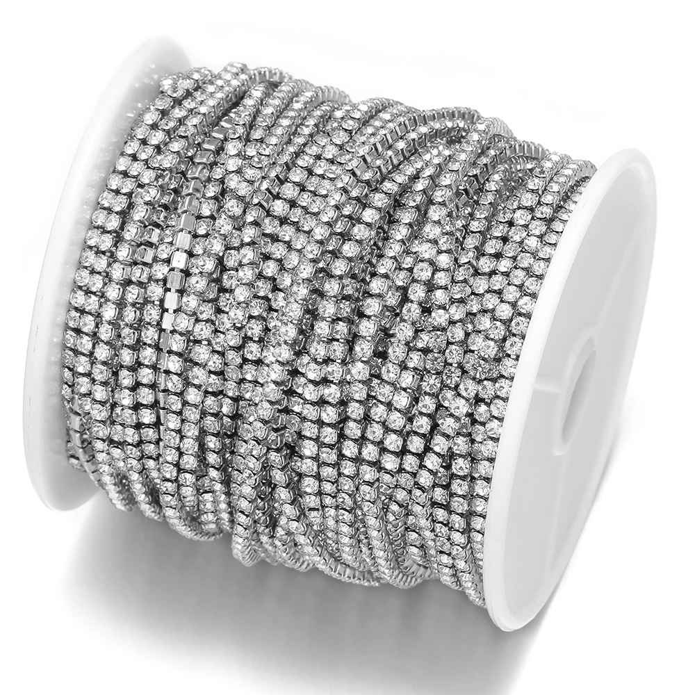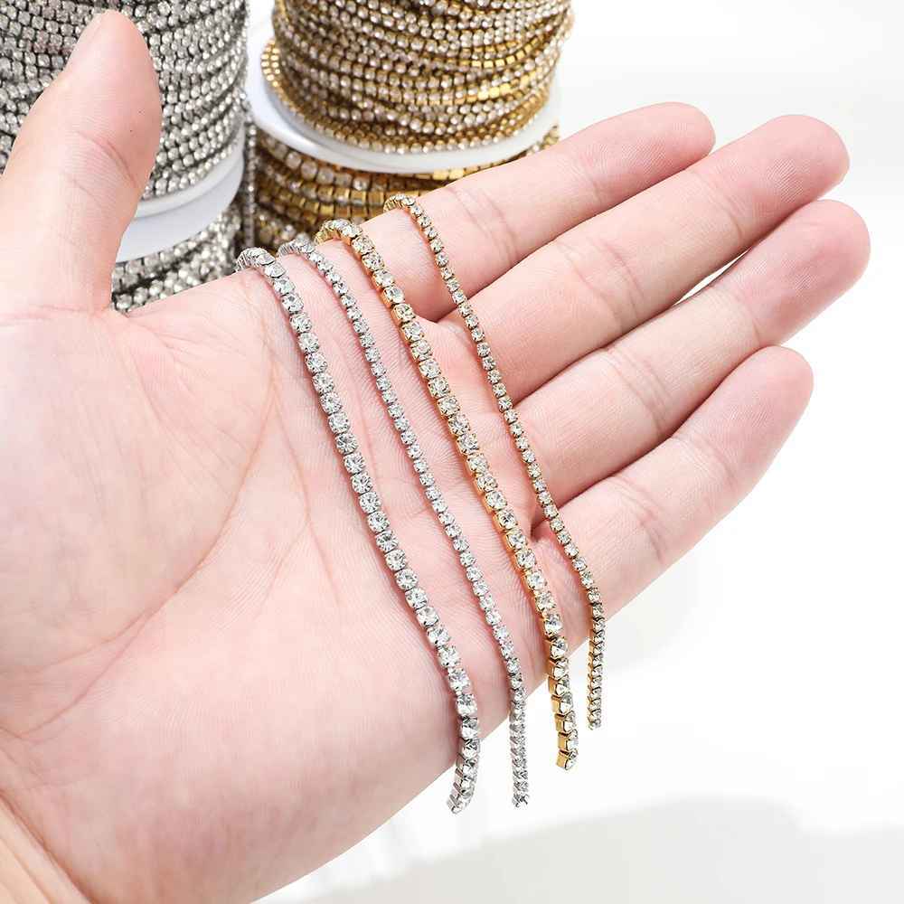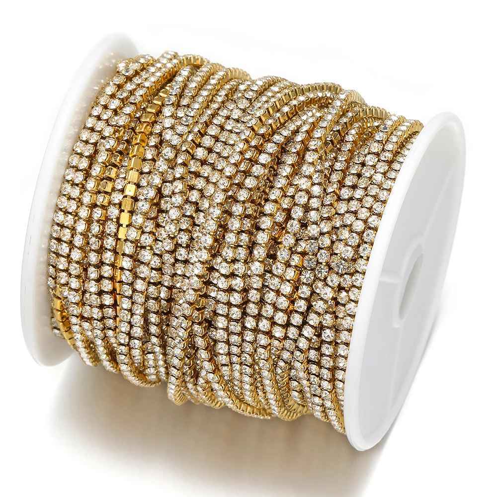 Corrente De Strass 2/5 Metros Cores Prata/Dourado SS 6,5/8,5/10/12/14