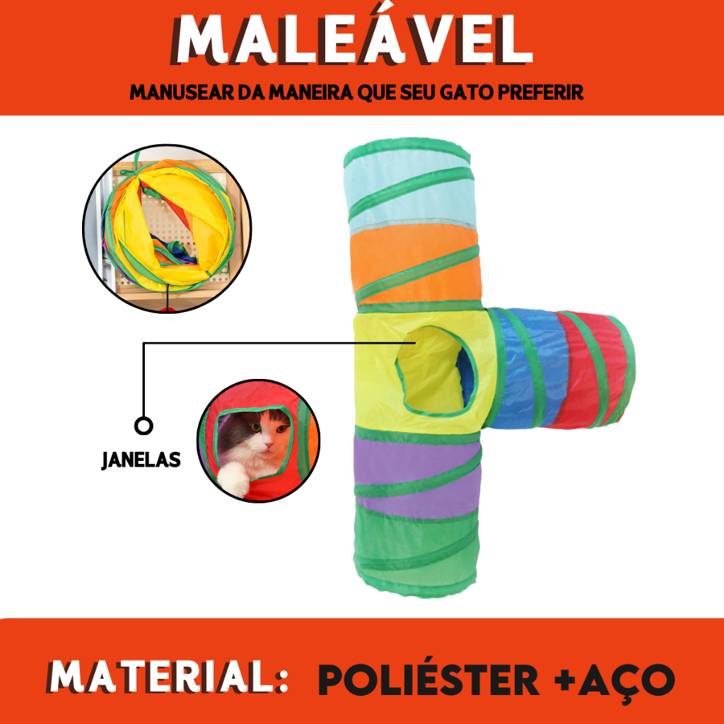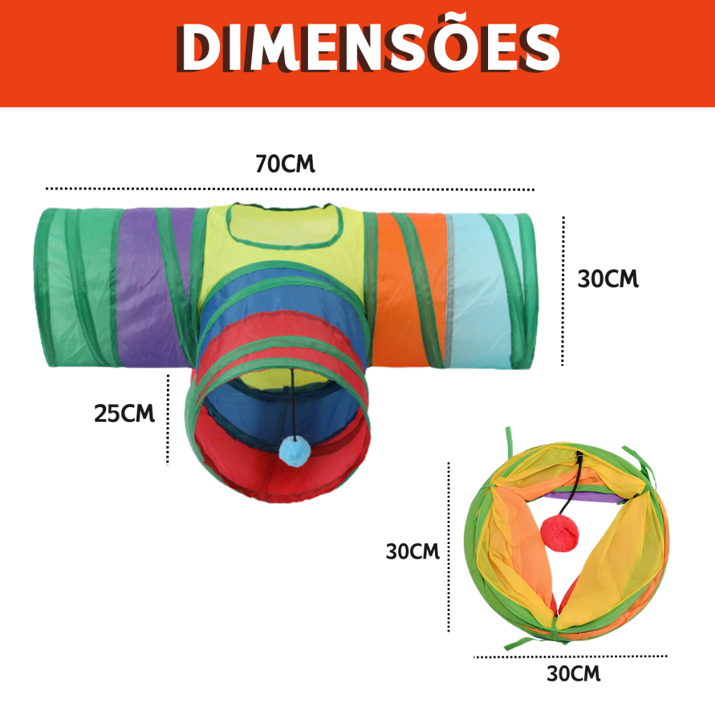 Tunel Brinquedo Labirinto Colorido Para Pets Dobrável - Mazzal