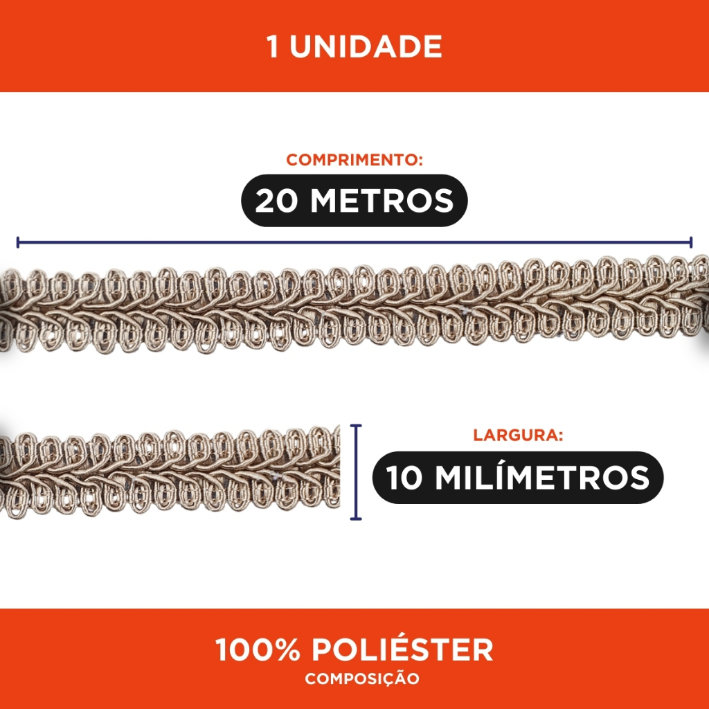 Passamanaria - Fita Galão 10mm - Rolo Com 20 Metros Várias Cores - 91- Mazzal