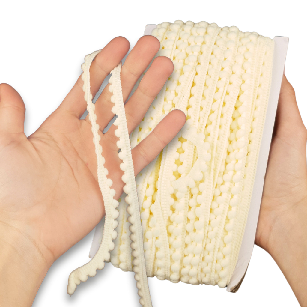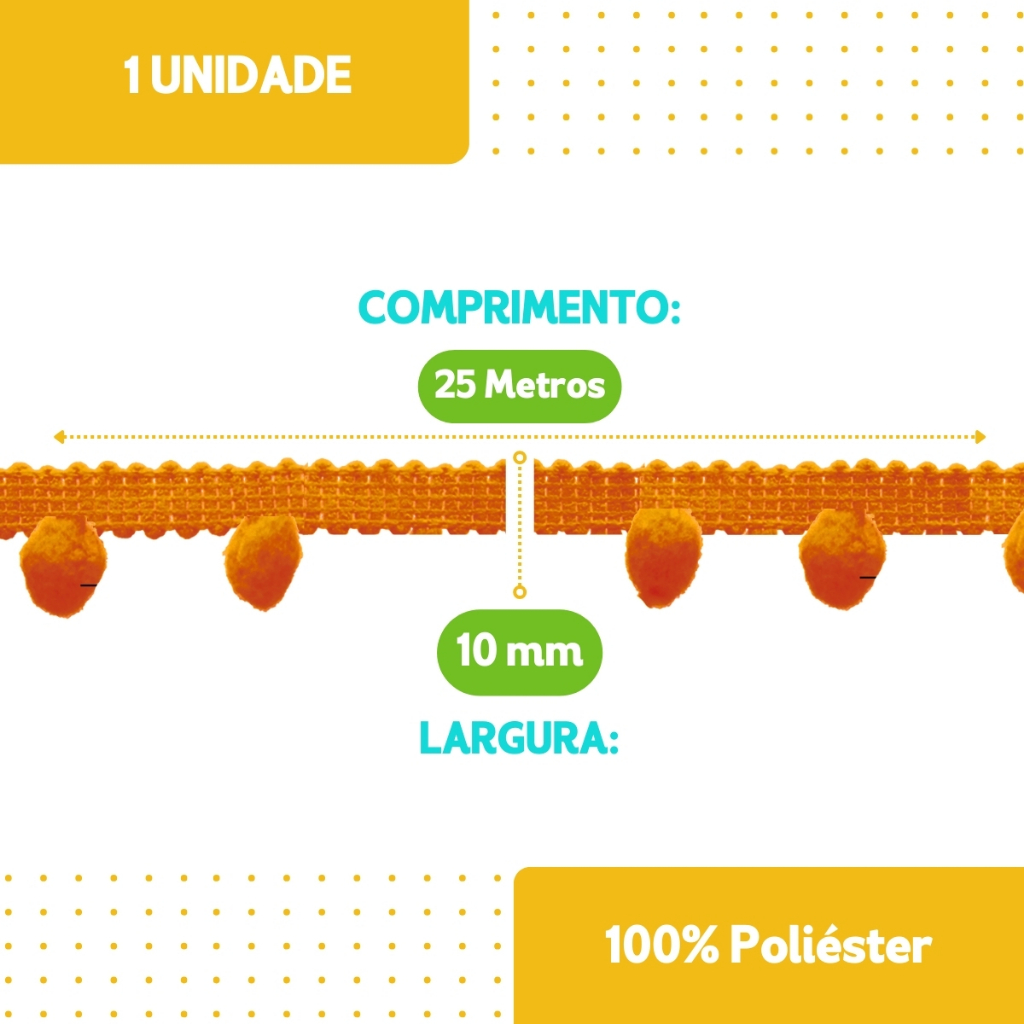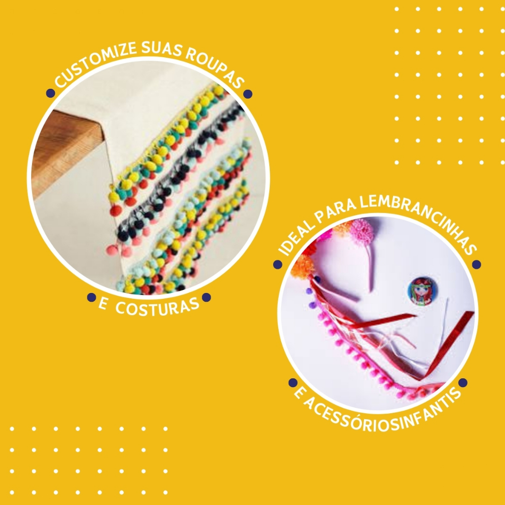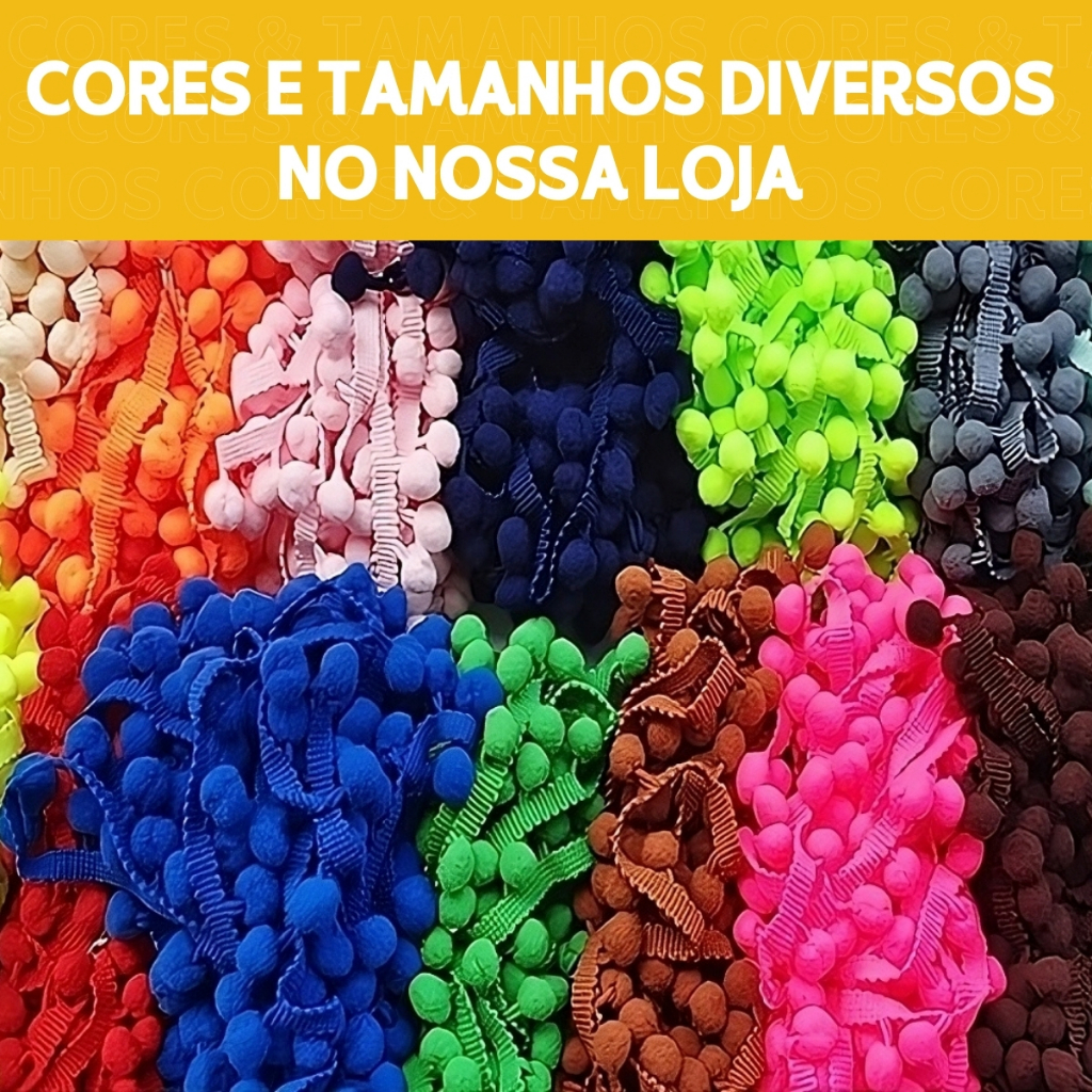 Fita Pompom 10mm Passamanaria C/25 Metros | Para Artesanato, Costura, Decoração e Fantasias | Mazzal