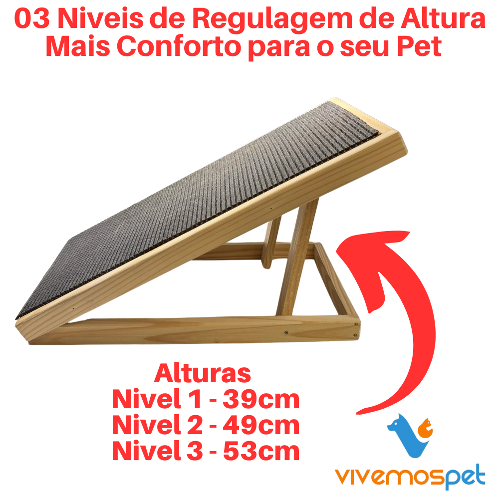 Rampa Grande c/corrimão para Cachorro e Gato Antiderrapante Com 3 Níveis de Regulagem Ajustável