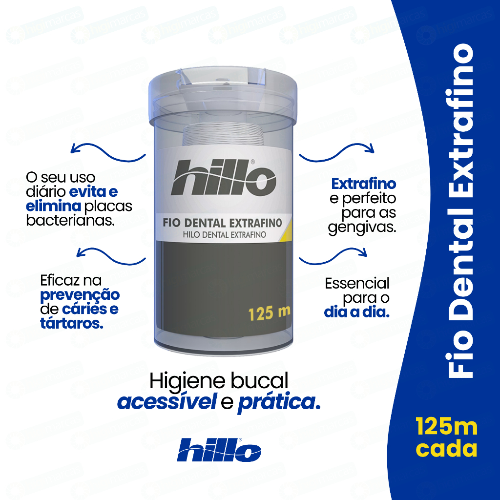 Kit 4 Fio Dental Extra Fino 125 Metros Hillo Econômico Qualidade Premium Brinde