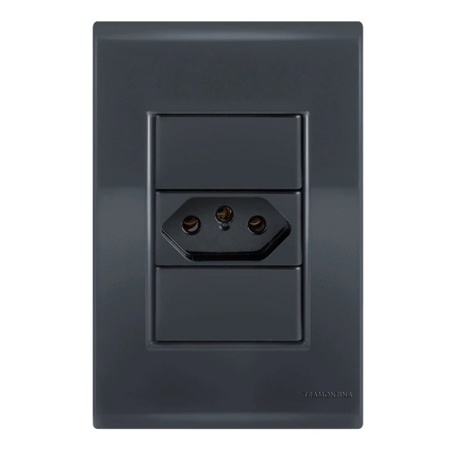 Conjunto Tomada Tramontina Grafite LIZ 4x2 10a 20a Interruptor Simples Paralelo Preto 250V