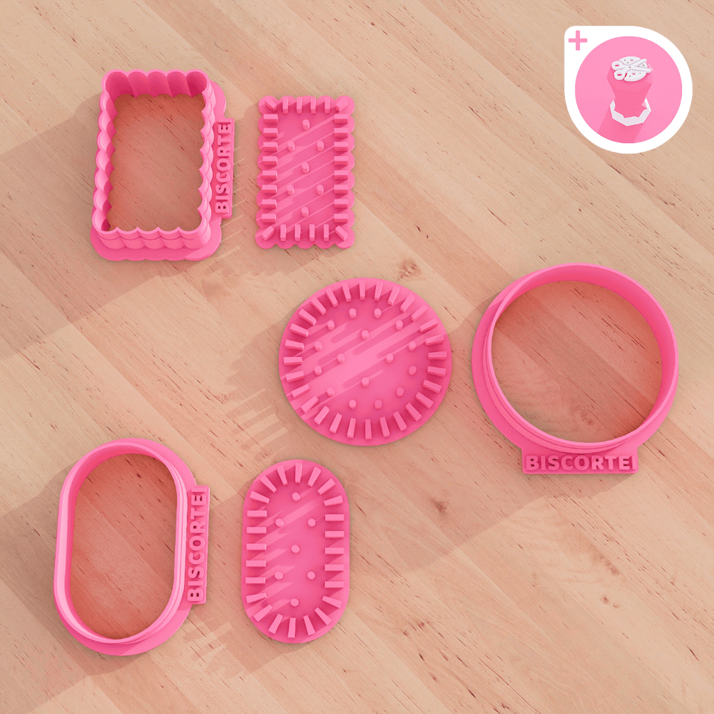 Kit Cortadores de Biscoito Maizena Carimbo Marcador Pasta Americana Biscuit Cookie Bolacha