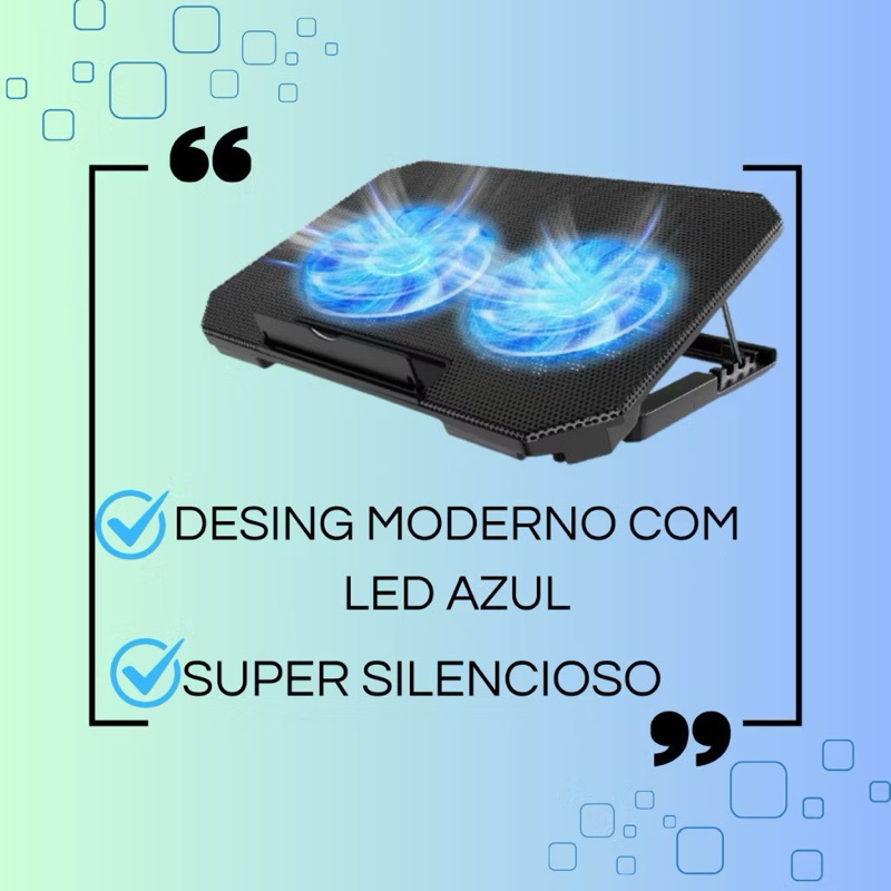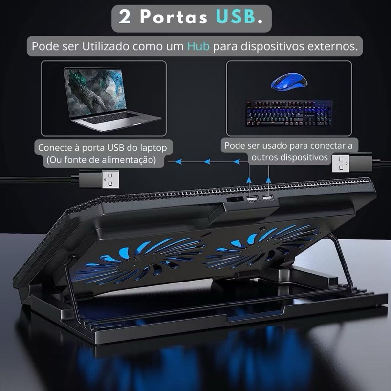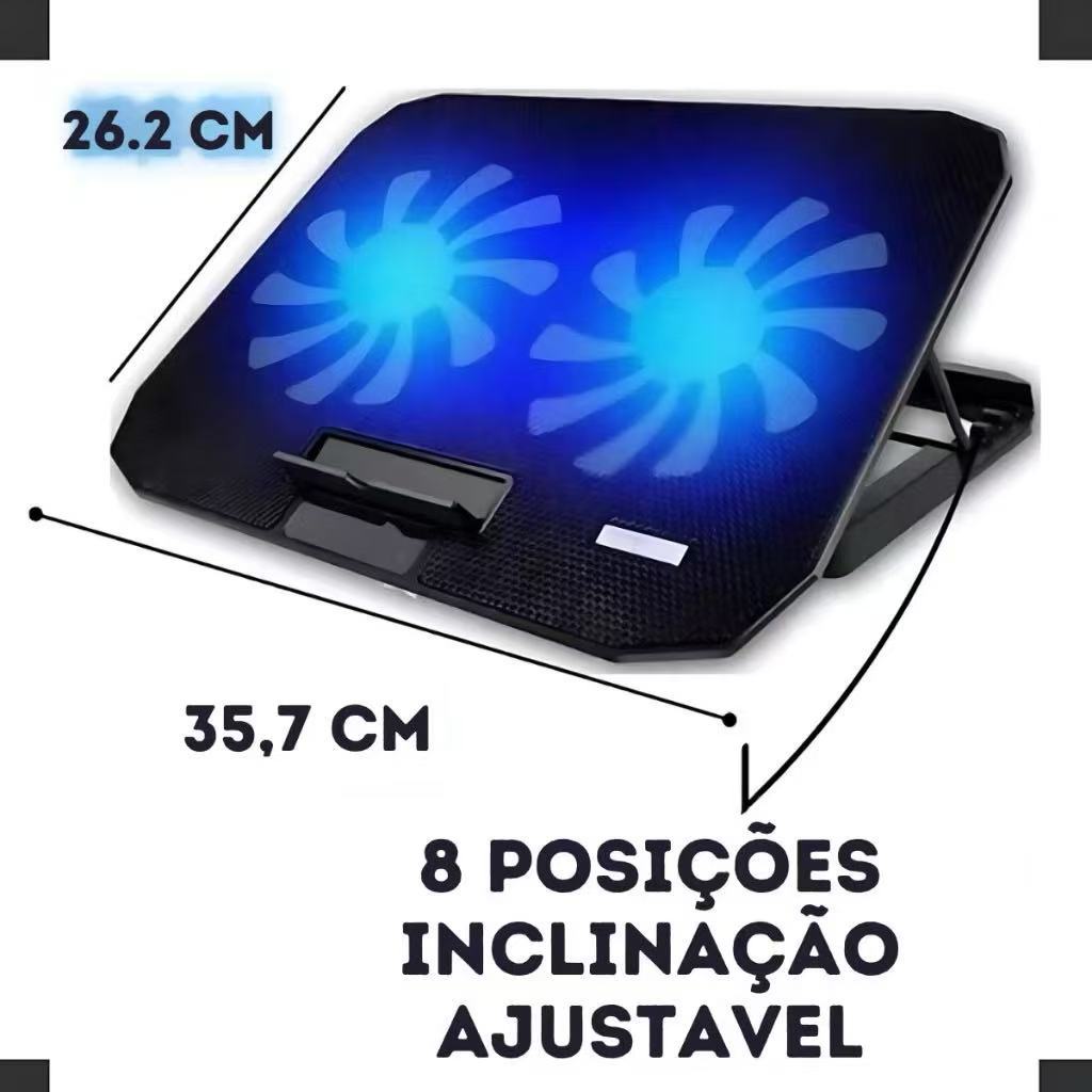 Suporte Base Refrigerada 2 Coolers Resfriar Notebook Ventilação Silenciosa Ajustável Até 17 Pol Usb