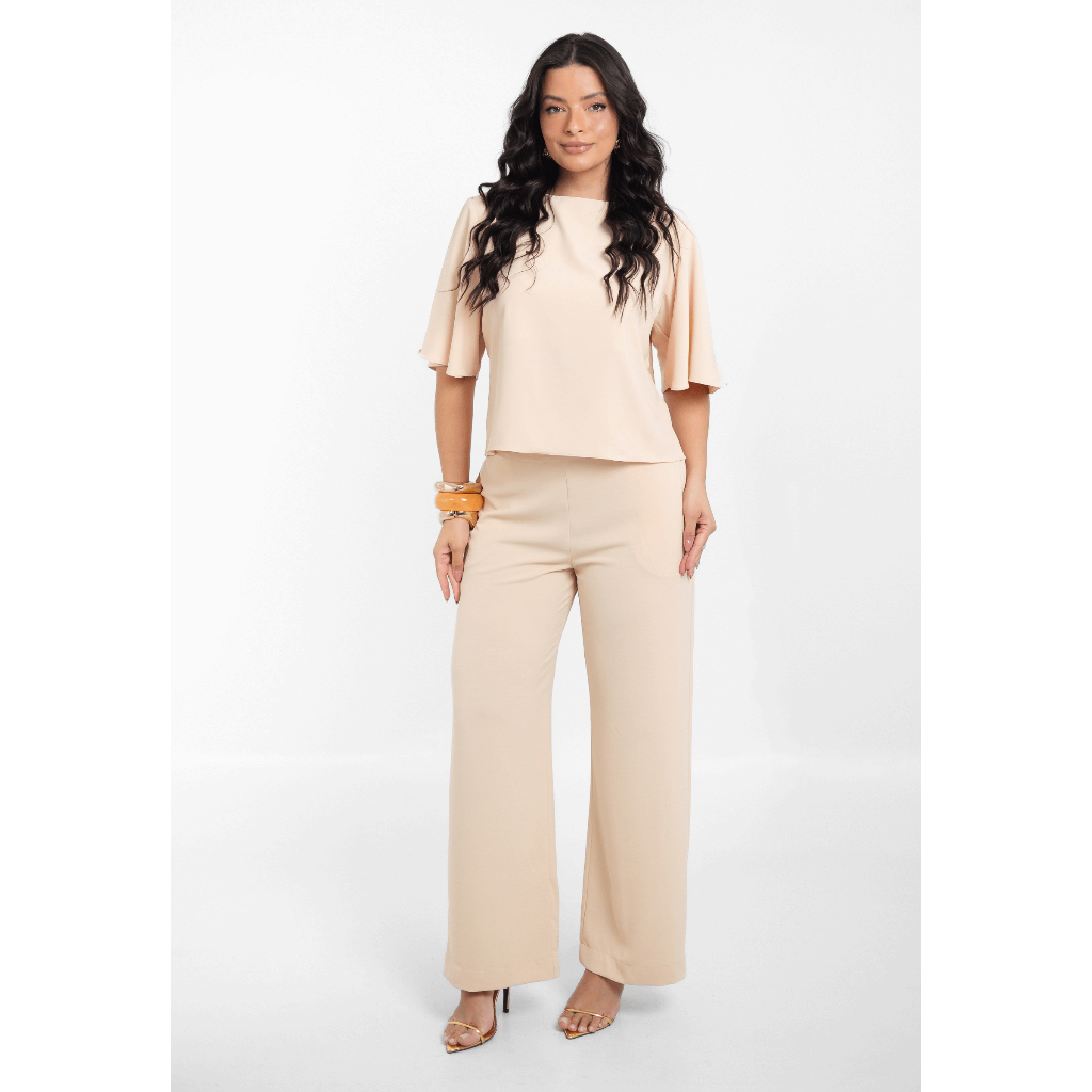 Conjunto Feminino Calça Pantalona E Blusa Manga Curta - Tânia