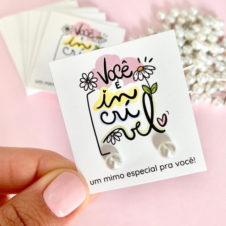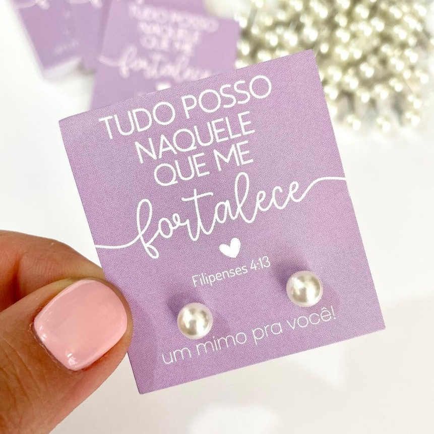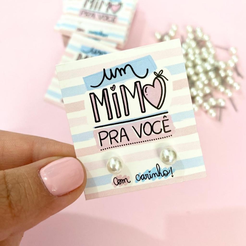 Kit Tag Mini Cartão ja Furadas + Brincos de Perola 6mm com Tarraxas