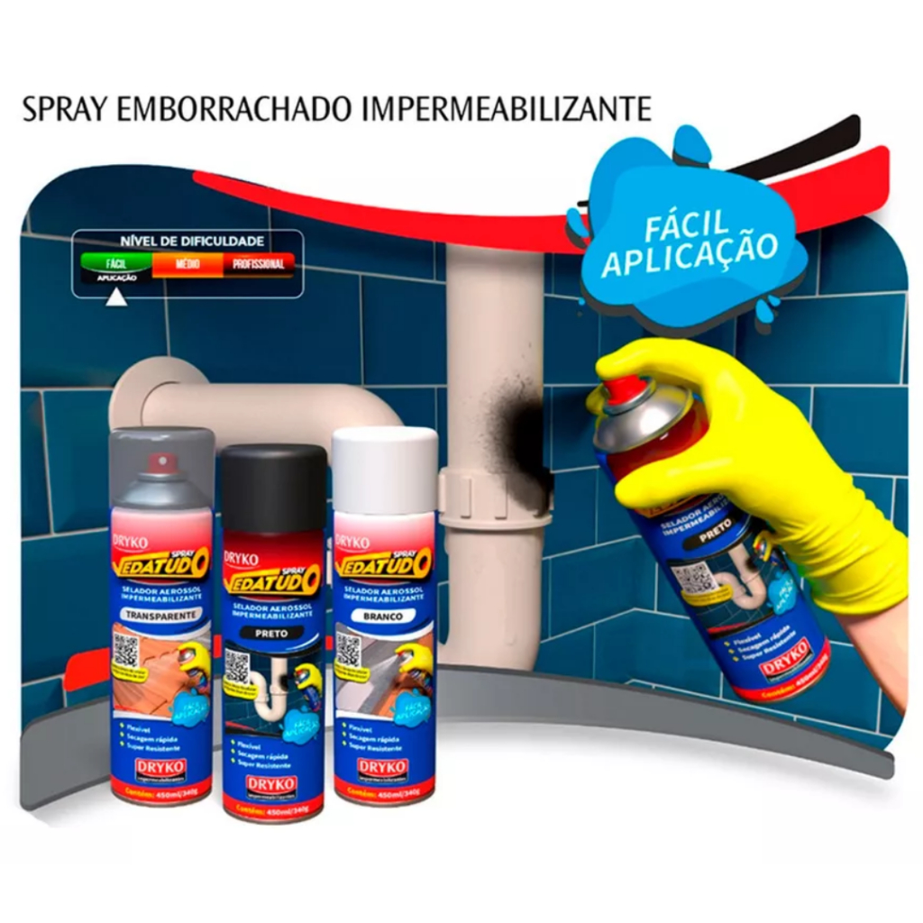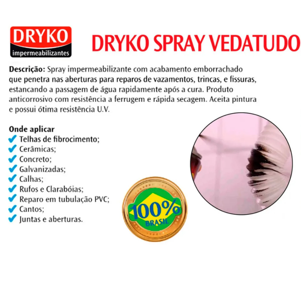 Kit 3 Sprays Emborrachados Branco Vedatudo Impermeabilizante Dryko 400ml