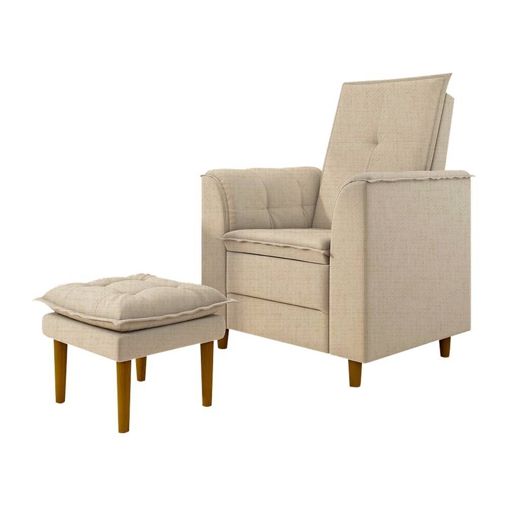 Poltrona de Amamentação Quarto Infantil com Puff Kate Pés Palito Linho Bege - New Belle