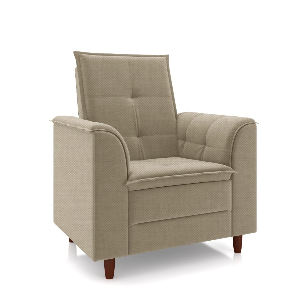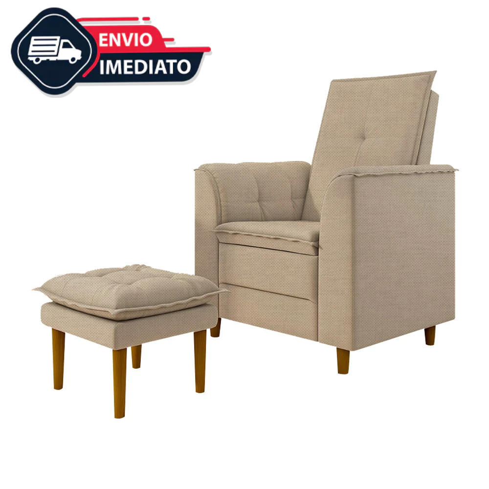 Poltrona de Amamentação Quarto Infantil com Puff Kate Pés Palito Linho Amêndoa